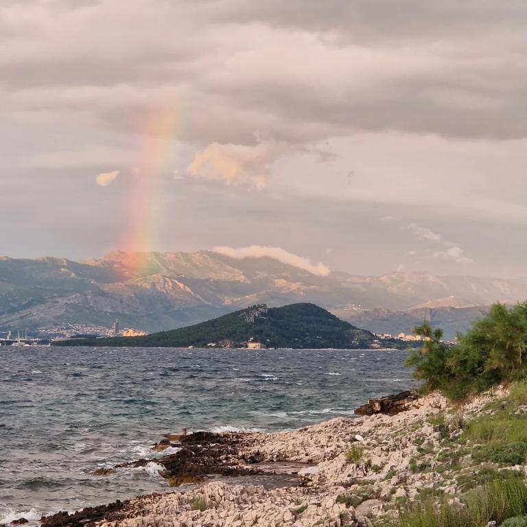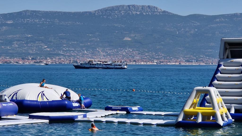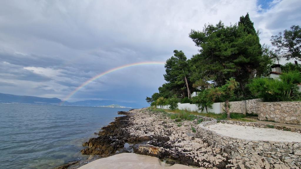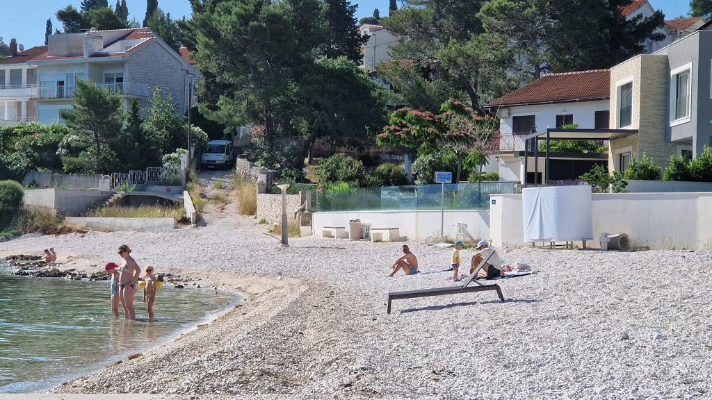 Apartmány se nacházejí v klidném prostředí v první řadě k moři. Parkování je zajištěno. Jsou deset minut chůze od města Slatina, jak daleko to trvá, než se dostanete na trh. Do Trogiru a Splitu se také dostanete lodí za půl hodiny. Letiště je vzdáleno půl hodiny jízdy. Ceny apartmánů zahrnují pobytovou taxu, parkování zdarma, neomezené používání klimatizace, úklidové služby. Minimální délka pobytu je pět nocí. Přijďte si užít moře a slunce...