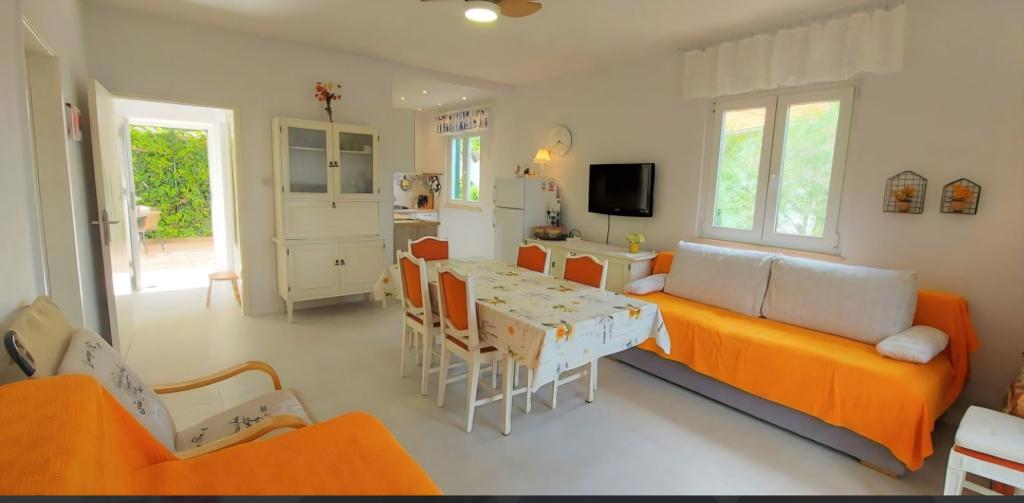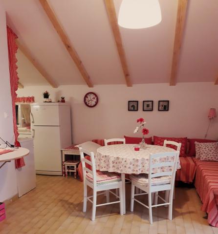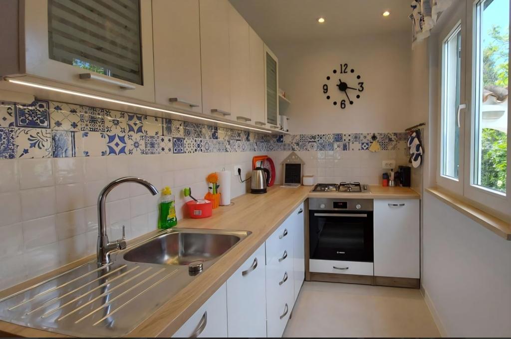 Dům na Čiovo má dva apartmány, které se nacházejí v těsné blízkosti moře, plně vybavené a moderní, v klidné části obce s výhledem na záliv Kaštela a Split. Ideální místo pro klid a relaxaci. Každý apartmán má 2 ložnice, obývací pokoj, kuchyň, koupelna. V přízemí bytu je velký a zadní terasu a byt v podkroví malou terasu. Parkovací místa pro 4 auta ve dvoře. Dům se nachází 1 km od Slatina, a 5 km od Trogiru. Do Trogiru jezdí pravidelné autobusové a trajektem od Slatina. Na pláži před domem se nachází oblázková pláž a nabízí zařízení, jako jsou restaurace a zábavní hry. Split je cca 30 km, na letiště cca 8 km a národní park Krka 50 km.