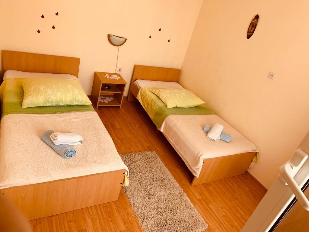 Ubytovací zařízení se nachází v krásném, klidném a atraktivním městečku Slatine, které je 6 km od města Trogir, které je na seznamu UNESCO, 30 km od Splitu, který je na seznamu UNESCO. Objekt je daleko od oblázkové pláže a moře pouze 50 m. Objekt má výhled na moře. Ubytování je obklopeno klidem, tichem a dobře míněnou čtvrtí. Objekt má vlastní oplocené parkoviště, které je zdarma. Ubytovací zařízení se skládá ze dvou ubytovacích jednotek (Apartmán A4 + 2 a Apartmán A4.). Každá ubytovací jednotka má jedno bezplatné parkovací místo ve dvoře ubytovacího zařízení. Apartmán A4 + 2: Plocha apartmánu je 65 m2, skládá se z velkého obývacího pokoje a kuchyně, 2 velkých ložnic s manželskou postelí, velké toalety a dvou velkých teras, na jedné terase je krb na grilování. V ubytovací jednotce se může ubytovat maximálně 6 osob (4 dospělí + 2 dospělí na skládací pohovce v obývacím pokoji.) V ubytovací jednotce je rozkládací dětská postýlka. Apartmán A4: Plocha této ubytovací jednotky je 45 m2. Skládá se z obývacího pokoje a kuchyně. Jeden pokoj s manželskou postelí a jeden pokoj se 2 lůžky a jedním malým WC. Ubytovací jednotka má velkou terasu s částečným výhledem na moře. Na terase je ohniště pro grilování. V ubytovací jednotce se mohou ubytovat maximálně 4 osoby. Ubytovací jednotka nabízí dětskou postýlku Památky Slatiny: Nejznámější dominantou Slatiny je svatyně Panny Marie Prizidnické a kostel Nanebevzetí Panny Marie. Město Trogir: Trogir je jedno z řady měst v Dalmácii, která jsou pod ochranou UNESCO. Trogir založili staří Řekové a během staletí se stal nejzachovalejším románsko-gotickým městem v Evropě. Ve skutečnosti skutečné hradní muzeum. Kromě zachovaných zdí, věží a městských bran zde můžete vidět nádherné městské paláce, četné kostely a kláštery a také katedrálu s jedinečným portálem. Z