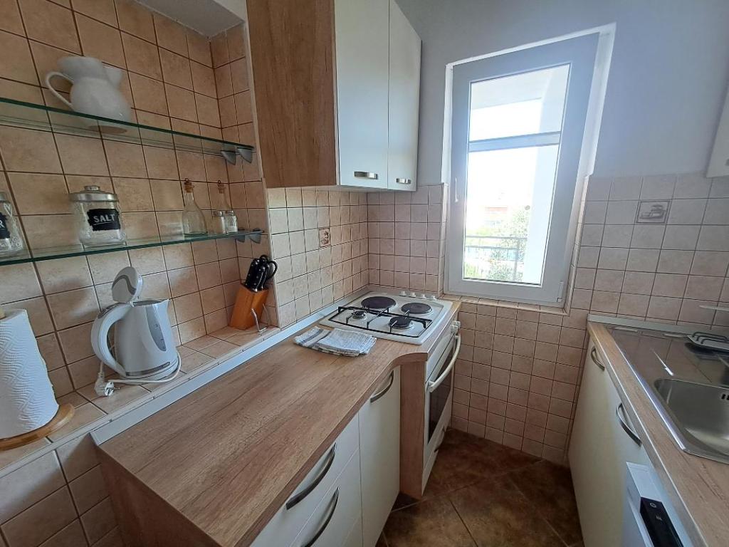 Naprosto fantastické ubytování. Nejlépe vybavený apartmán. V kuchyni dostatek veškerého nádobí a příslušenství. Ve skříni k dispozici další přikrývky, ručníky, hodně ramínek na šaty. K dispozici sušák na prádlo s kolíčky. Vše čisté. Velká terasa s posezením a prostorem na umístění padleboardu a věcí na potápění. Paní majitelka velice milá. Kousek na krásnou, oblázkovou pláž kde je kavárna., skákací atrakce pro děti. Nedaleko jsou restaurace, obchůdek, pekárna, tabák, zmrzlina, pizzerie, zastávka autobusu a malý přístav odkud odplouvá loď do Splitu a do Trogiru.