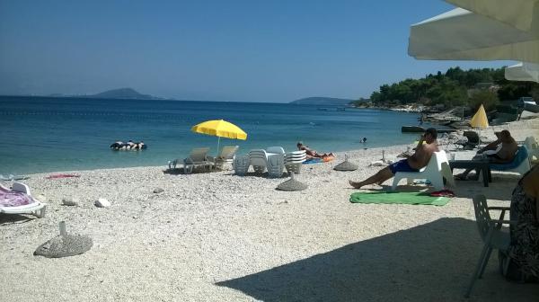 Fantastické místo! Klidné okolí, v blízkosti obchodů, restaurací a turistických atrakcí. Trogir 15 minut, Split asi 1/2 hodiny autem. Je zde také dobře fungující MHD. Letiště Split nedaleko. I samotný ostrov Čiovo nabízí mnoho zajímavých výletních cílů. Největší výhodou je však pro mě pláž a moře ve vzdálenosti 10-20 metrů... Stačí přejít trochu rušnou silnici. Poměrně mírný sestup k vodě. Oblázková pláž .. jako v Chorvatsku A majitelé! Nesmírně milí, přátelští a sympatičtí lidé. Známe se a vidíme se každé léto, v poslední době i dvakrát ročně, už několik let. Vřele doporučuji!
