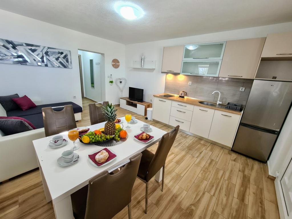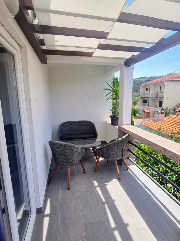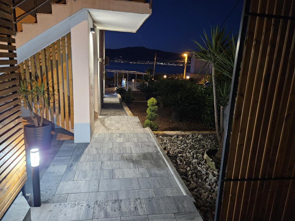Apartmány Villa Palma ve Slatine jsou od moře 15 m. Všechny apartmány mají výhled na moře. Apartmány jsou pohodlné a vybavené: klimatizací, sat/tv, wi-fi. Nacházejí se na ploše 1000 m2. Před apartmánem je krásně upravená zahrada s grilem, kde se můžete bavit s přáteli se středomořskými rostlinami. Nacházejí se v ideální poloze, 300 m od centra a 15 m od moře, abyste mohli strávit v klidu, užívat si moře a slunce a zároveň, pokud chcete aktivnější dovolenou, v centru města jsou plážové bary, kavárny , restaurace a sportoviště. Hostům je k dispozici parkoviště a garáž, kde si můžete nechat věci na pláž. Před apartmánem je také zahrada o velikosti 150 m2, která je vhodná pro hry dětí, zatímco vy budete hlídat děti na pláži. Zahrada z terasy Přátelští hostitelé vám rádi pomohou zorganizovat vaše výlety, rybí piknik, pronajmout si loď, kolo, skútr... a také vše mimo jiné! Slatine je spojena lodní linkou se Splitem a Trogir několikrát denně!