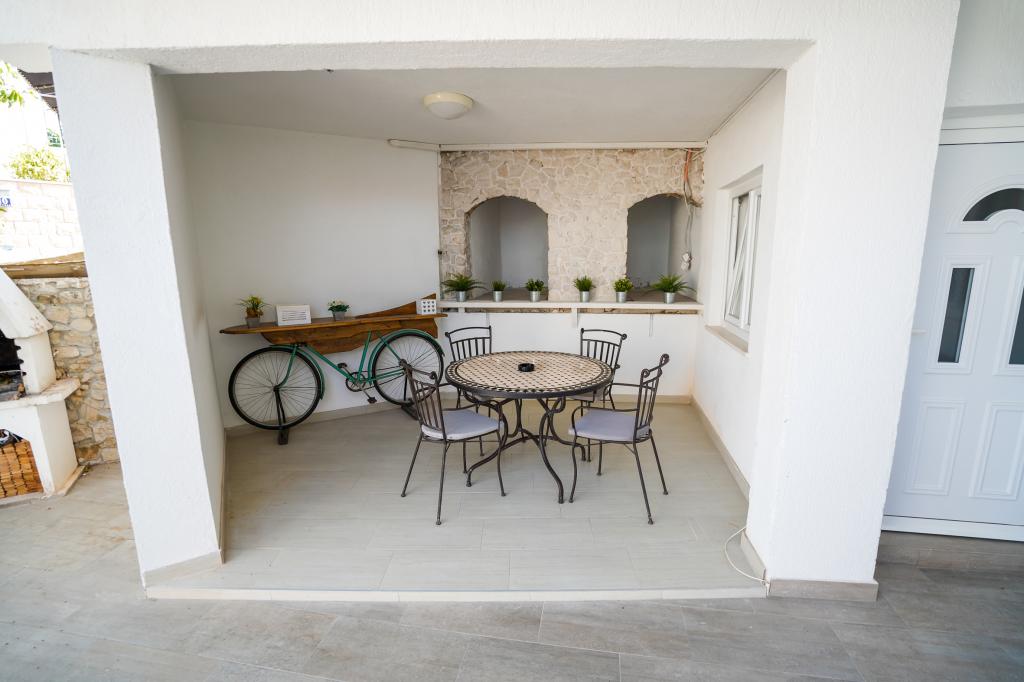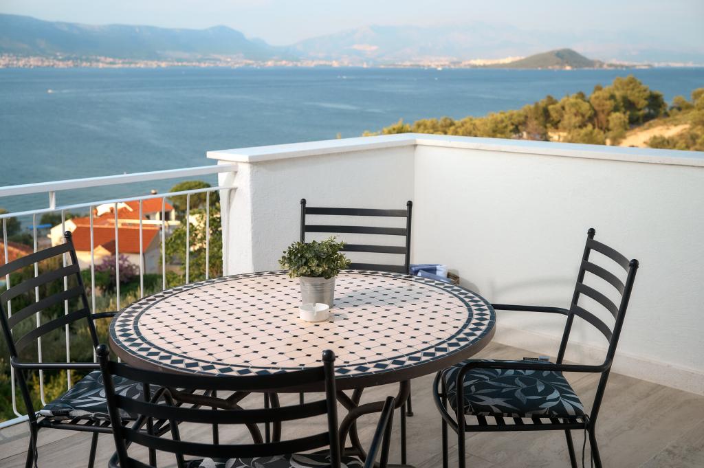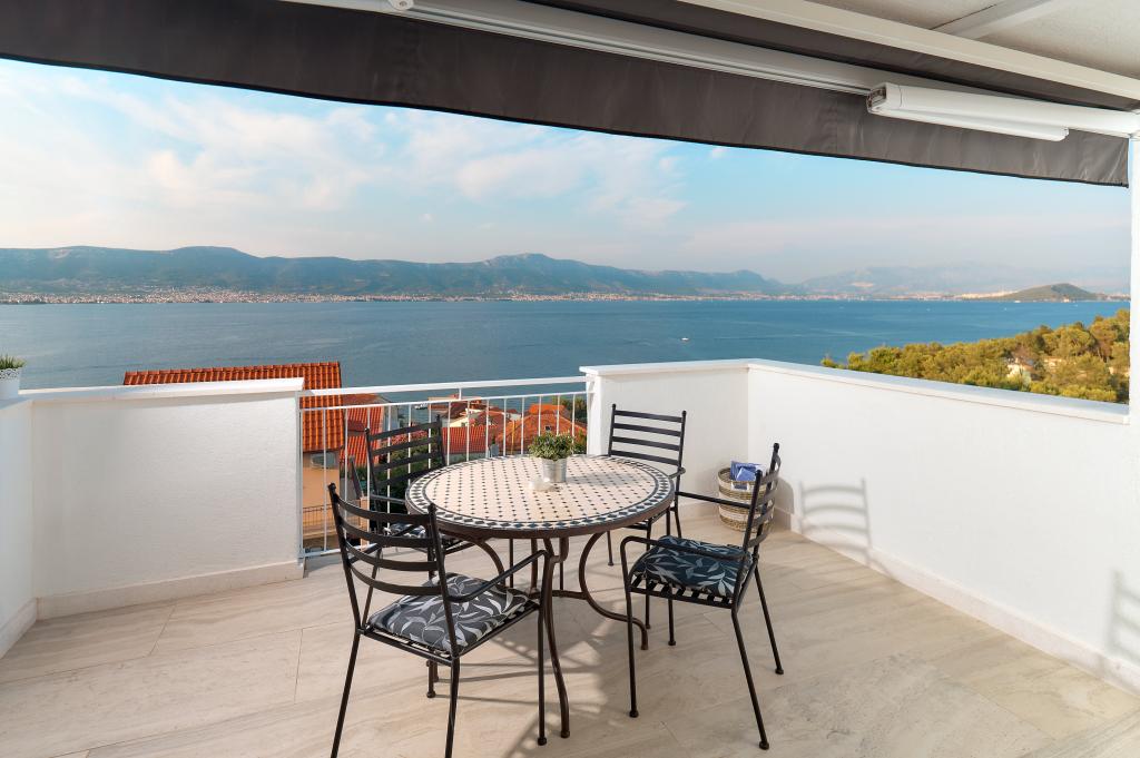 Dobrý den ... já bych pochválit Mrs. Andrea slušný a korektní přístup a vstřícnost ... byt se nachází uprostřed malého kopce, je to opravdu je stejně jako obrázky ... velmi čisté, byli jsme ohromeni především na velké terase, která má krásný výhled na celý záliv ... k nejbližšímu (písečné zátoce a několika většími kameny) pláž je vzdálena cca.150 m ... plážový bar je cca.200m ... dobře zásobené obchody a restaurace jsou cca.500m .... každé ráno (9: 00-9 30) přinesl chléb a různé pečivo ulicí do bytu ... doporučuji všem, kteří skutečně chtějí odpočinout ... vidět ostrov Trogiru a pak na kole nebo si půjčit Scoter nebo pěšky .... Split jízdě pravidelný lodní linka ... budeme určitě zpátky .... Zdravím ...