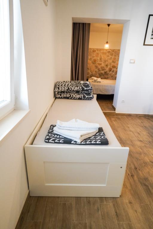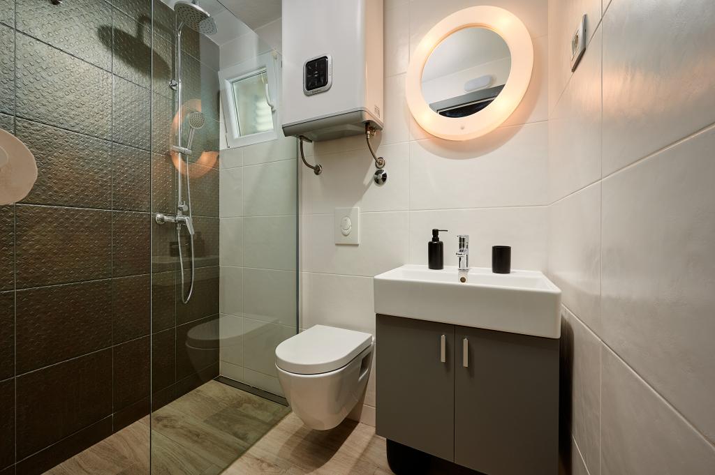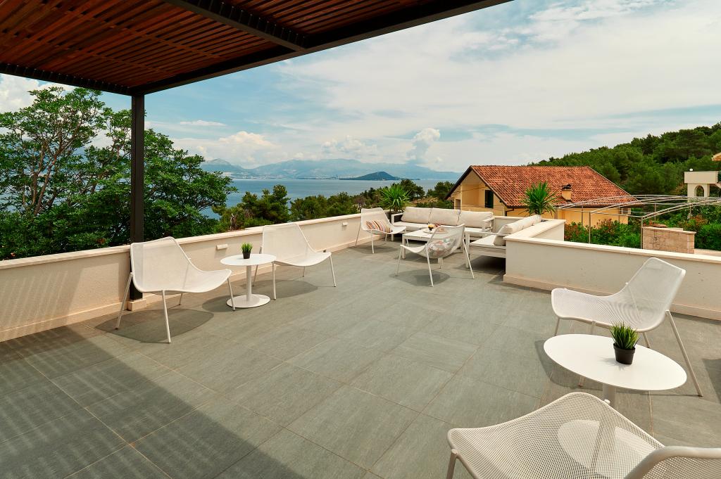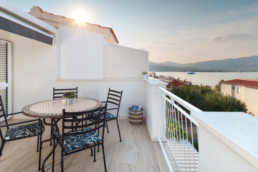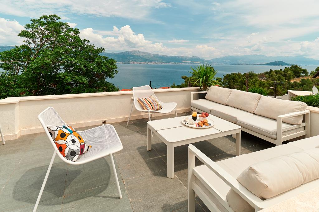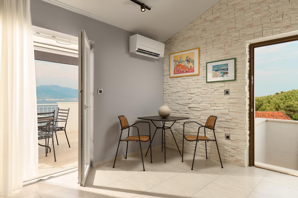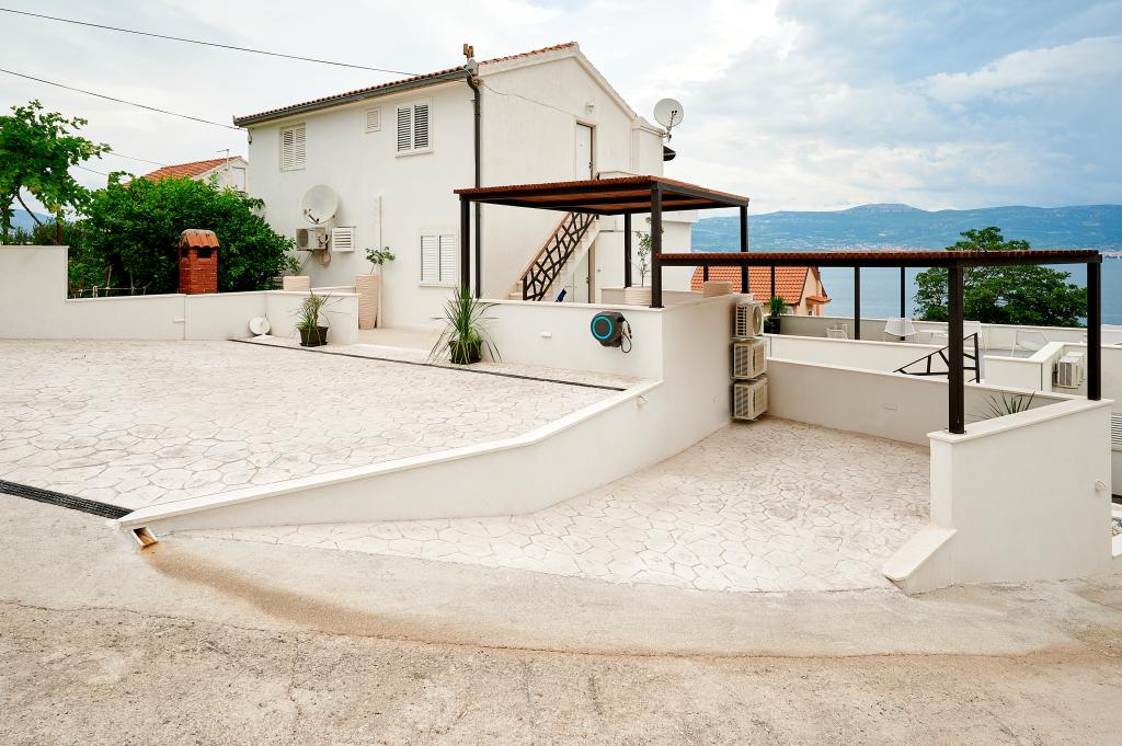 Vítejte v našich krásných apartmánech Quinn Tiger, Rustica a Sky, které se nacházejí v klidné části Slatiny na ostrově Čiovo. Jsou ideální destinací pro odpočinkovou dovolenou u moře a blízko kulturních a historických památek. Quinn Tiger vyniká svým propracovaným designem a luxusními detaily. Prostorný interiér a kombinace teplých a odvážných tónů z něj dělají ideální volbu pro ty, kteří chtějí něco speciálního. Sdílí velkou společnou terasu s apartmánem Rustica, ideální pro ranní kávu nebo večerní posezení. Rustica nabízí směs moderního a tradičního stylu s dřevěnými detaily, které vytvářejí útulnou, domáckou atmosféru. Sky vyzařuje eleganci a moderní design. Světlé tóny a vzdušný prostor poskytují dokonalou atmosféru pro relaxaci. Kromě společné terasy nabízí i vlastní samostatnou terasu pro naprosté soukromí. Všechny apartmány se nacházejí v soukromém domě, který zajišťuje klid a pohodu, pouhých 100 m od pláže, obchodů, restaurací a plážových barů. Historické město Trogir, pod ochranou UNESCO.