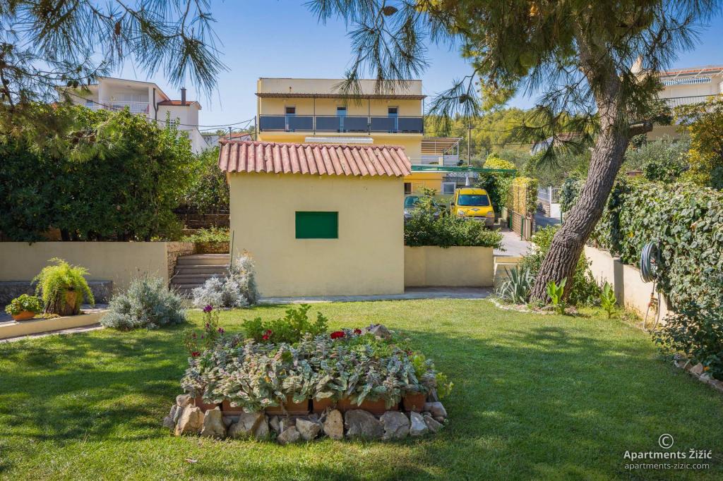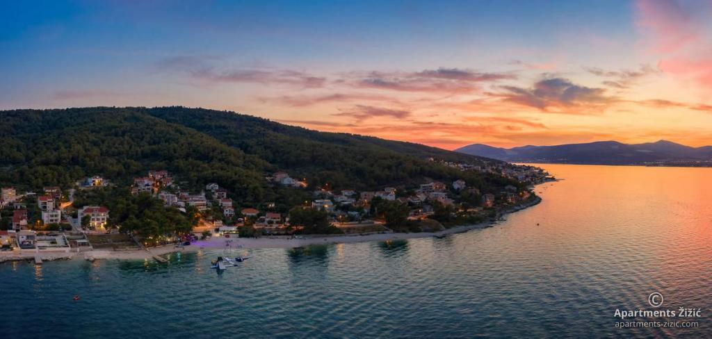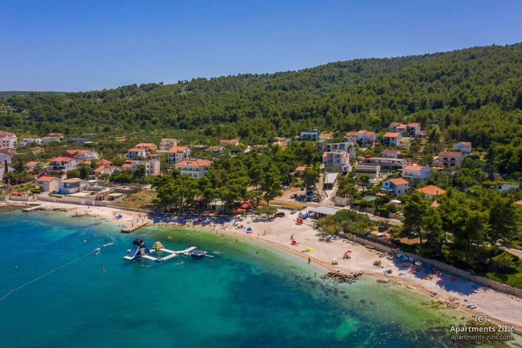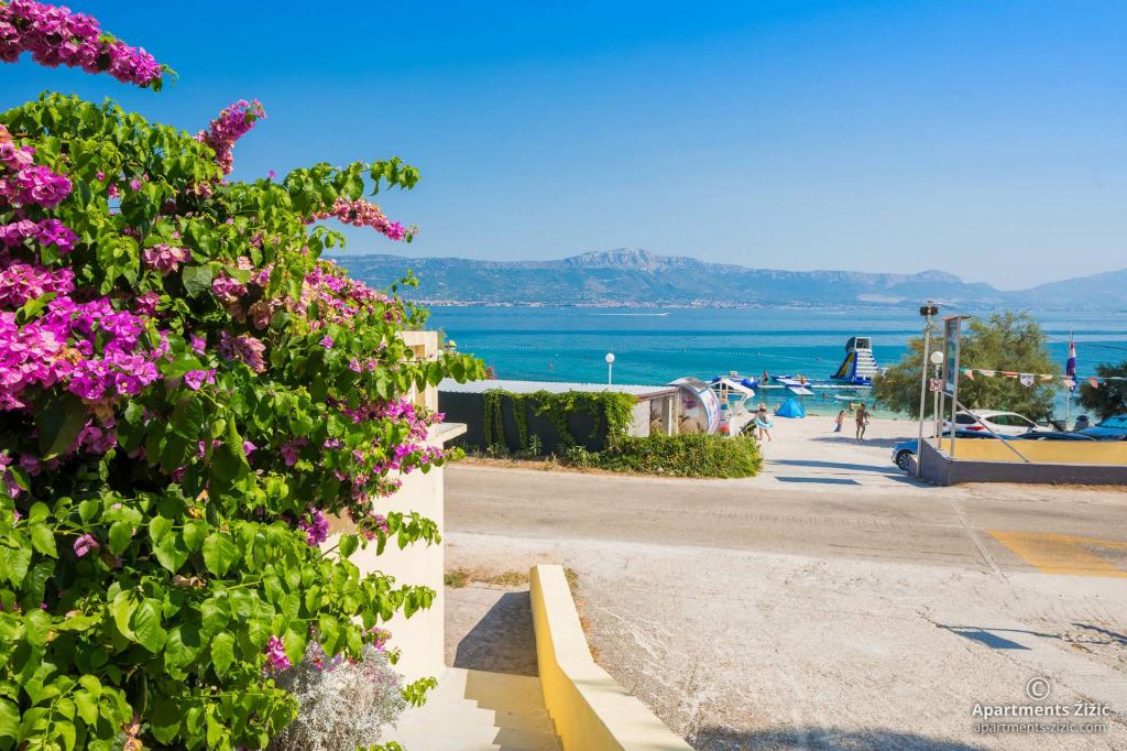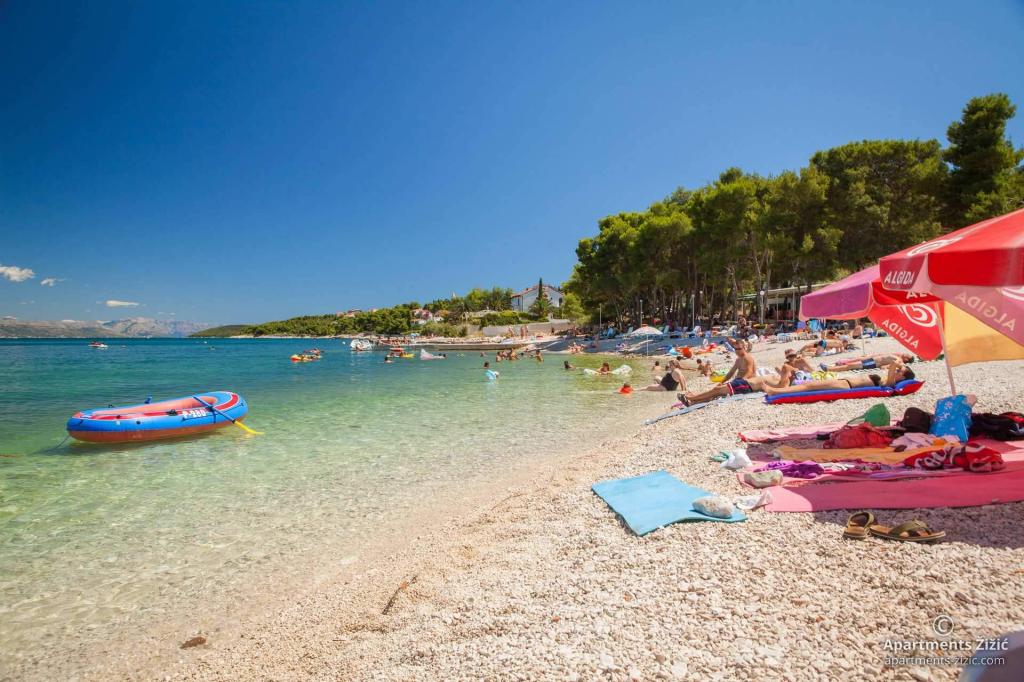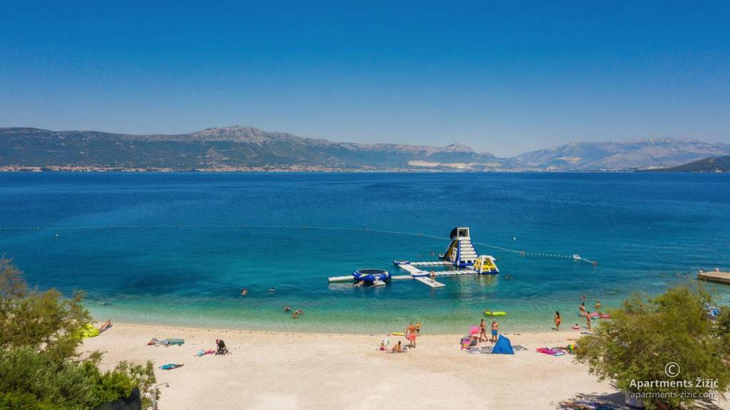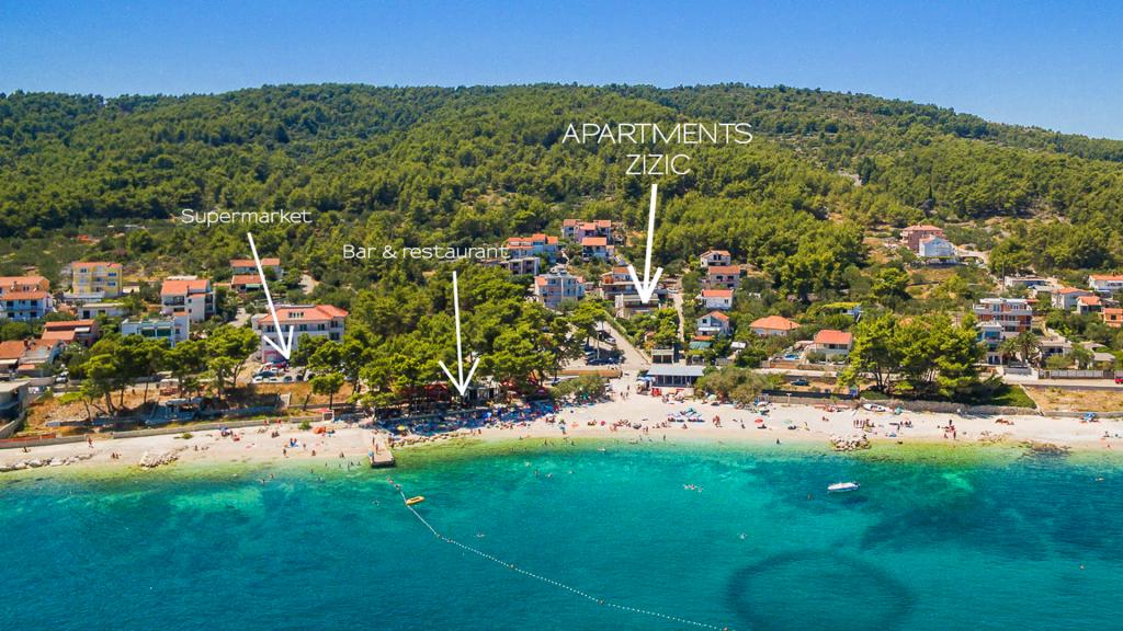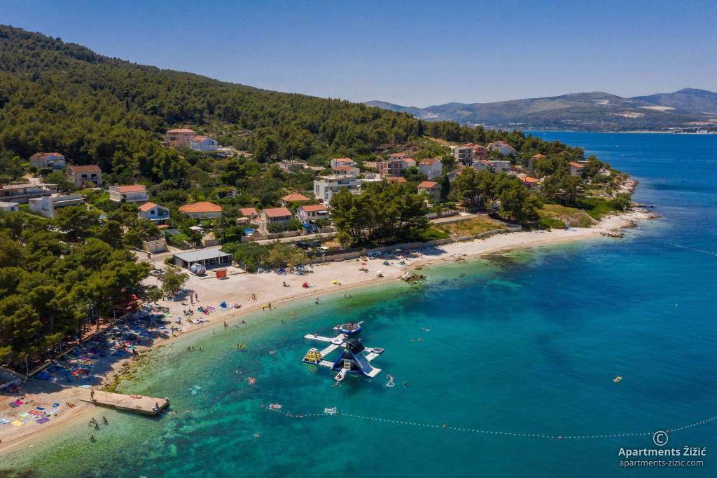 Zizic Apartments se nachází na ostrově Čiovo v Chorvatsku, 1 km od Slatine a 7 km od Trogiru. Naše apartmány jsou ideální volbou pro klidnou a relaxační dovolenou, obklopené přírodou a středomořskými rostlinami, pouhých 20 metrů od krásné pláže. Každý apartmán má terasu, oddělené pokoje, kuchyň se spotřebiči, obývací pokoj a koupelnu. Také pro byty A4 a A5 je k dispozici jedno parkovací místo na krytém a uzavřeném parkovišti (před domem) a pro byt A6 2 parkovací místa. Na pláži před domem je stravovací zařízení s kavárnou a restaurací, s možností zapůjčení slunečníků a lehátek a používání sprchy. Jen 80 m od domu je supermarket a bankomat.