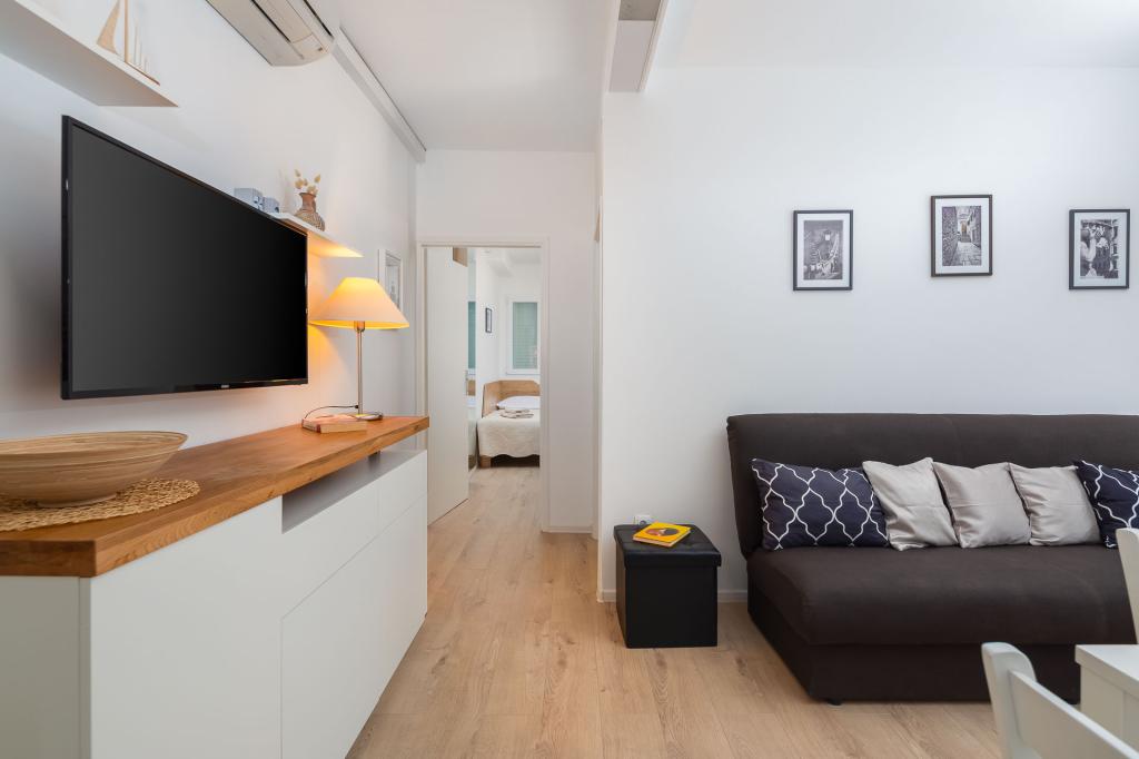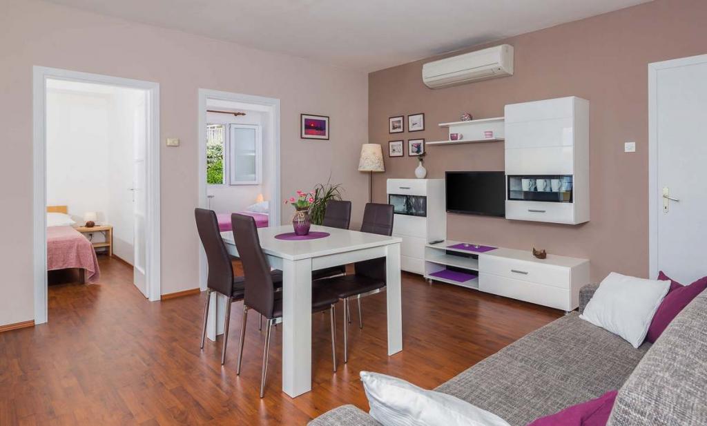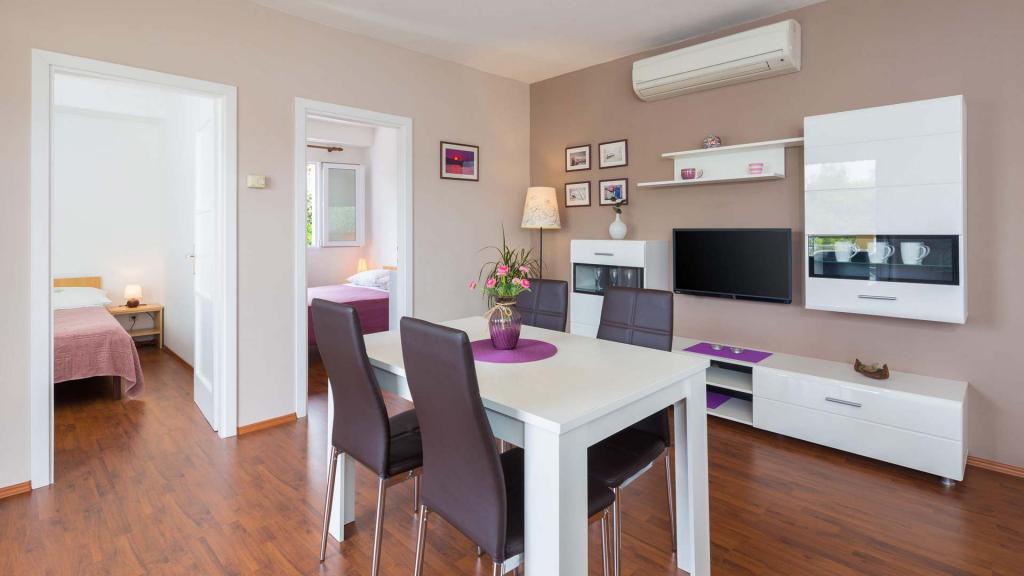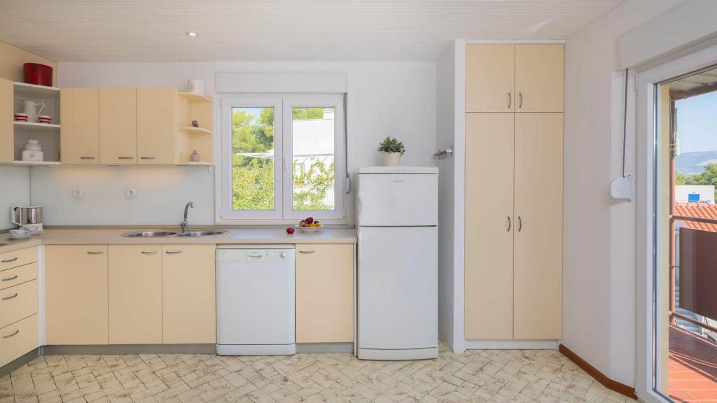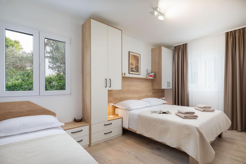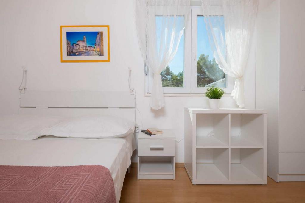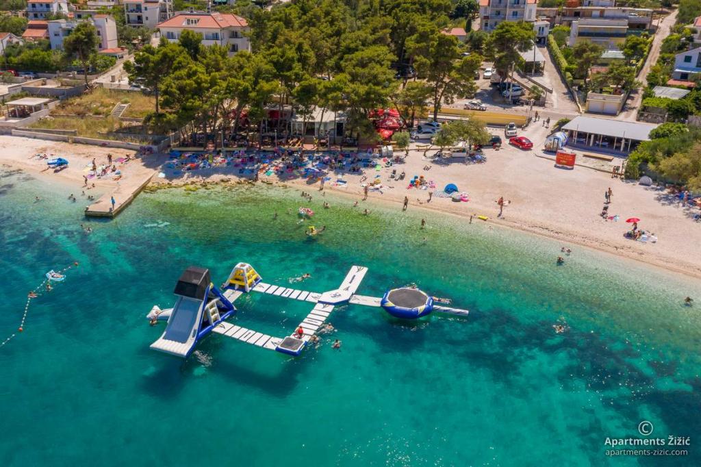 Zizic Apartments se nachází na ostrově Čiovo v Chorvatsku, 1 km od Slatine a 7 km od Trogiru. Naše apartmány jsou ideální volbou pro klidnou a relaxační dovolenou, obklopené přírodou a středomořskými rostlinami, pouhých 20 metrů od krásné pláže. Každý apartmán má terasu, oddělené pokoje, kuchyň se spotřebiči, obývací pokoj a koupelnu. Také pro byty A4 a A5 je k dispozici jedno parkovací místo na krytém a uzavřeném parkovišti (před domem) a pro byt A6 2 parkovací místa. Na pláži před domem je stravovací zařízení s kavárnou a restaurací, s možností zapůjčení slunečníků a lehátek a používání sprchy. Jen 80 m od domu je supermarket a bankomat.