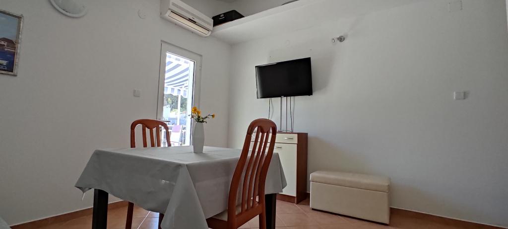 Naše apartmány se nacházejí v Donja Krušici na ostrově Šolta. Jeden apartmán se nachází v přízemí a druhý v prvním patře domu, v první řadě k moři v klidné zátoce. Nejbližší pláž je hned vedle domu a 5 minut chůze odtud se nachází druhá pláž, kde si můžete užívat křišťálově čisté moře. Apartmán v prvním patře se skládá z ložnice, vybavené kuchyně s jídelním koutem, koupelny a příjemné terasy. K dalšímu vybavení patří klimatizace, TV a pračka. Apartmán v přízemí se také skládá z ložnice, vybavené kuchyně s jídelním koutem a koupelny. Terasa apartmánu v přízemí má výhled na moře. K dispozici je také TV s vybavením, jako je Netflix. Apartmán v přízemí má klimatizaci a stropní ventilátor pro chlazení.