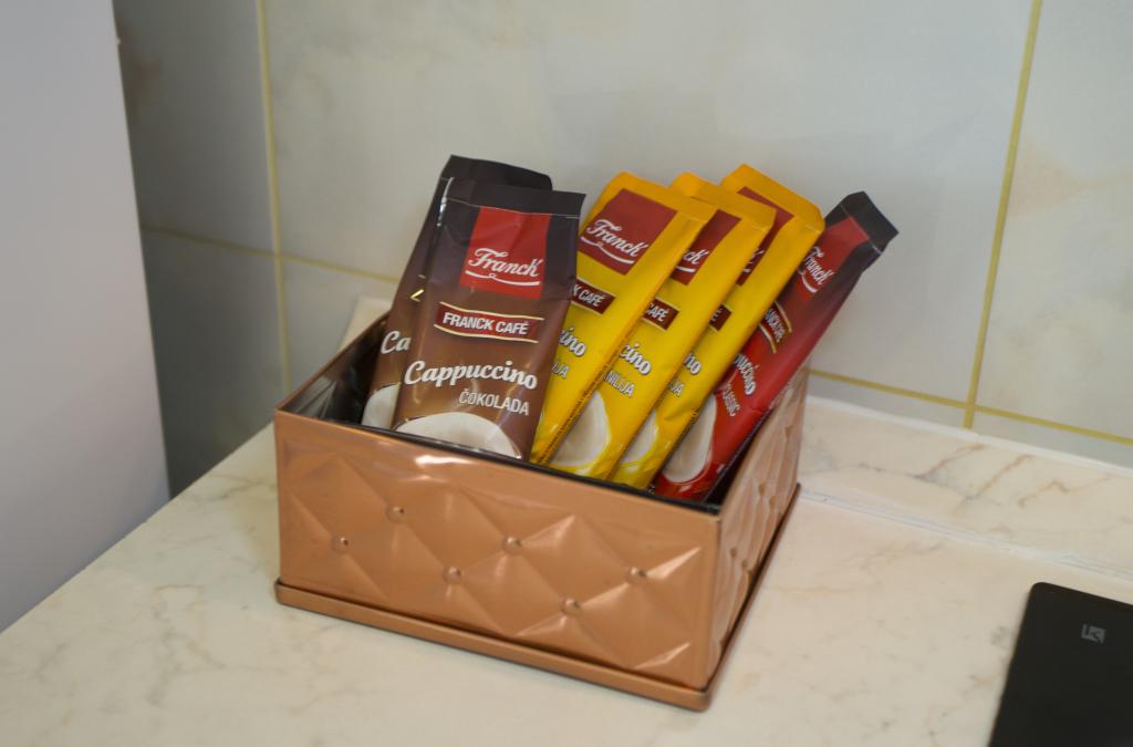 Abychom vám pobyt a dovolenou co nejvíce zpříjemnili, přivítáme vás hned na začátku patřičným uvítacím nápisem. Byt se nachází v části města, která nabízí četnou občanskou vybavenost v okolí. Uděláme vše pro to, aby vaše zasloužená dovolená zůstala milou vzpomínkou na nás a naše město Split. Připravili jsme pro vás turistické mapy a materiály, abyste se v našem městě co nejlépe a nejsnáze zorientovali a sami jsme vám k dispozici pro jakékoli další informace. Jsme k dispozici po celou dobu vašeho pobytu na mobilním telefonu pro všechny vaše dotazy a rádi je zodpovíme a poskytneme vám místní rady. Abychom vám poskytli pohodlí, které doma máte, je apartmán vybaven všemi spotřebiči a nádobím, ložním prádlem a ručníky a najdete zde i základní potřeby jako cukr a kávu. Abychom vám dopřáli pocit odpočinku a pobytu v hotelu, připravili jsme pro vás hotelovou kosmetiku.