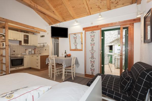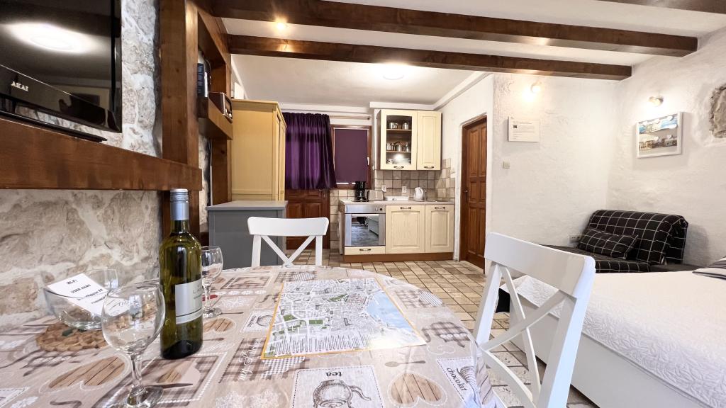GUARDIAN si vybral STUDIO: Jeden z 10 nejlepších evropských hotelů a další ubytování, které si dovolená opravdu užívá: Studiové apartmány jsou ve starém domě, nedávno vyzdobeném ve staré části města, v klidné ulici. Ideální pro vaši dovolenou v centru města a potěšení a čistou dalmatskou atmosféru. Studiové apartmány mají manželskou postel, přistýlku, kuchyň, sprchu, TV, klimatizaci, rádio s CD, vysoušeč vlasů, internet zdarma, veřejné parkoviště zdarma... Díky své výhodné poloze nebudete během pobytu potřebovat auto ve Splitu. Vše pro relaxační pobyt po ruce v centru města, nábřeží, kopec Marjan, četné pláže, obchody, trajektové přístavy, autobusové nádraží, to vše lze dosáhnout pěšky, v mírném středomořském vzduchu. Centrum města je vzdáleno 100 m. Ve dvoře je možné využít ohniště.