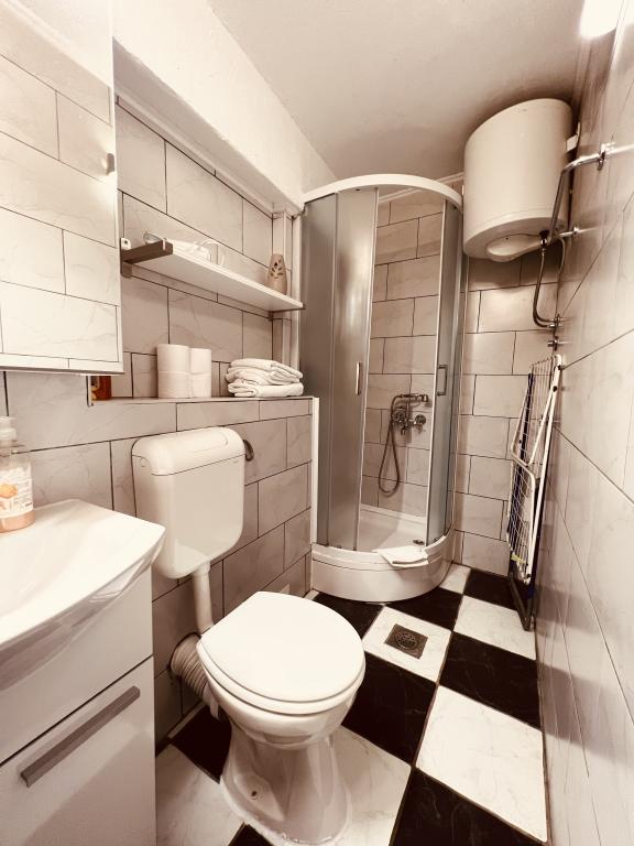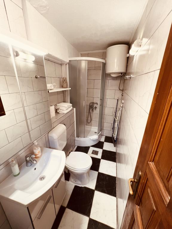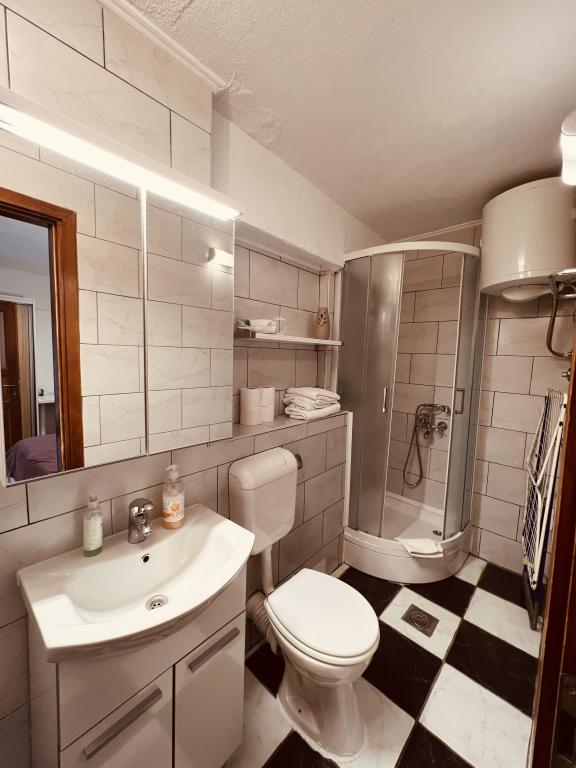 Penzion F je perfektní. Nachází se v centru města, 5 minut chůze od hlavní promenády Riva, restaurací, barů, obchodů ... Také pokud rádi chodíte / jezdíte na kole v lese, kopec Marjan je 15 minut chůze od bytu. Byt má krásný malý dvorek s krbem. Všechno je velmi čisté a uklizené. Majitel je skvělý, velmi snadno komunikovatelný a je vám k dispozici, pokud během pobytu potřebujete něco. Také mě pozdravil pěknou lahví vína.