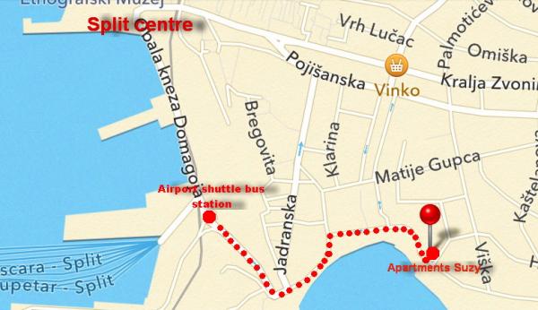 Apartmány se nachází 20 m od oblíbené pláže Bačvice. Je to 5 minut chůze do přístavu trajektů, autobusového nádraží a vlakového nádraží a 10 až 15 minut chůze do centra Splitu. V blízkosti nemocnice Firule, tenisových kurtů, mnoha restaurací a barů podél promenády. Soukromé parkoviště je k dispozici na vyžádání. Vlastníme jedno parkovací místo.