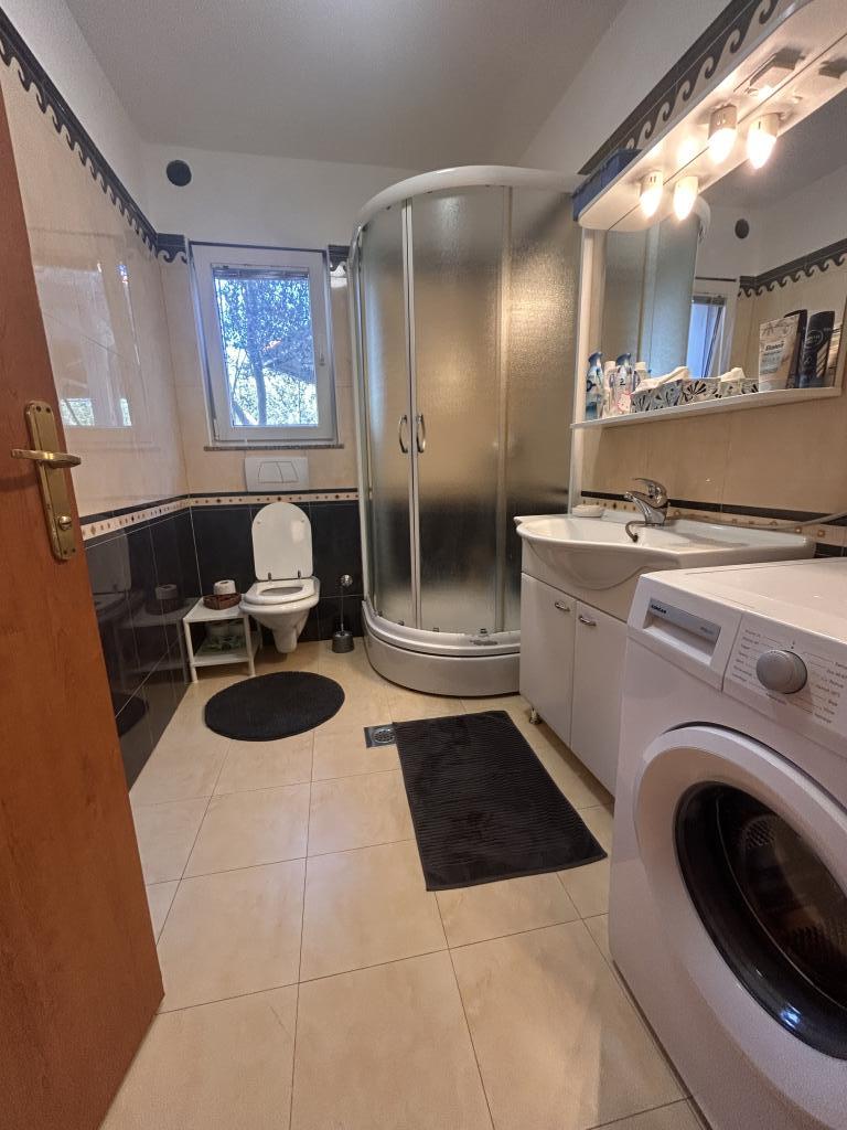 Nový a moderně zařízený apartmán v klidné vesničce Srima nedaleko Vodice. Krásně upravená pláž, vzdálená pouhých 100 metrů, je držitelkou Modré vlajky - mezinárodního ocenění, které zaručuje čistotu moře a zachovalé životní prostředí. Nemovitost se nachází 200 metrů od centra obce a 25 minut chůze (po promenádě podél moře) do města Vodice. Nemovitost se nachází v přízemí a má velkou terasu s grilem a houpačkou. K dispozici je také zahrada s vysazenými květinami, velkým jídelním stolem a zahradním nábytkem pro relaxaci. Nemovitost má kuchyň, obývací pokoj (LG TV, rozkládací pohovka), koupelnu a dvě ložnice. Kuchyně je nová a vybavená všemi potřebnými domácími spotřebiči (mikrovlnná trouba, kávovar Dolce Gusto, toustovač, varná konvice atd.). Vítejte!