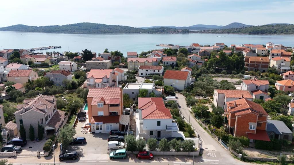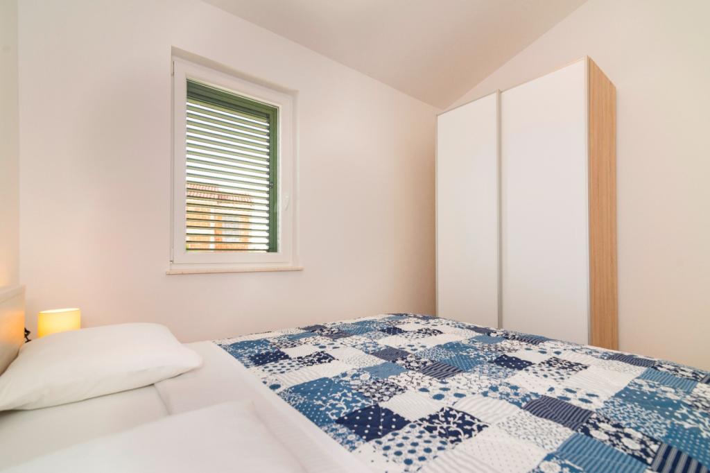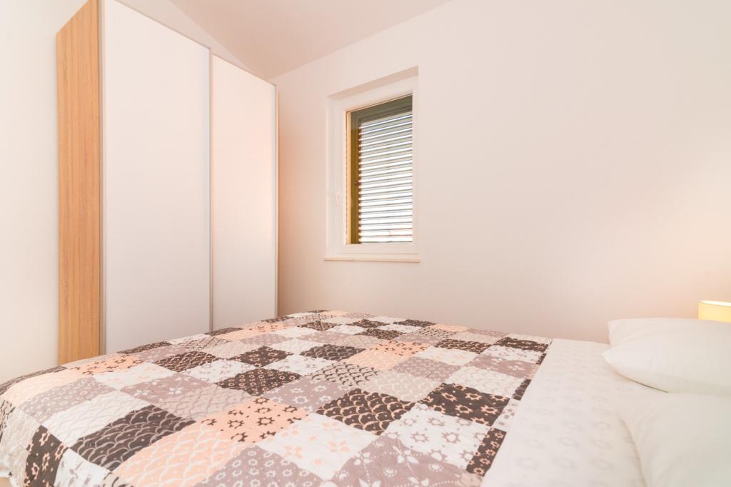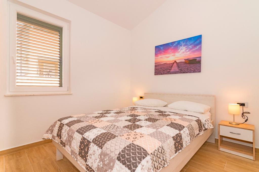 Moderní apartmány na klidném místě Srima se nachází 200 m od moře. Po ulici se dostanete do centra, kde je velká oblázková pláž, promenáda podél moře, která vede do Vodice, obchody, kavárny, park, dětské hřiště a další zařízení. Dva apartmány stejné velikosti se skládají ze dvou ložnic, kuchyně, koupelny, obývacího pokoje a velké terasy v přízemí a balkonu v 1. patře. Ke každému bytu náleží hlídané parkovací místo v oploceném dvoře. Prostorné, uklizené a nové prostředí domu vám poskytne pocit pohodlí. Spojení s ostrovy (loď taxi), blízkost tří národních parků a kulturní centrum Šibeniku jsou další atrakce, které doplní zážitek z tohoto krásného živého malého místa, které vám zůstane v paměti.