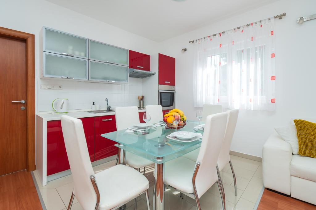 Apartmán je moc pěkný, čistý, moderní, dobře vybaven. Vypadá opravdu jako na fotografii. Majitelé velmi příjemní, ochotní, nic není problém. Rádi se vracíme, byli jsme již několikrát v malém i velkém apartmánu a vždy velká spokojenost. Je to klidné místo, ideální pro rodiny s dětmi. Kousek je město Vodice a Šibenik, vhodné na výlet. 2 minuty pěší chůzí je mělké moře ideální pro děti. V blízké vzdálenosti je restaurace, kavárna, pizza a zmrzlina.