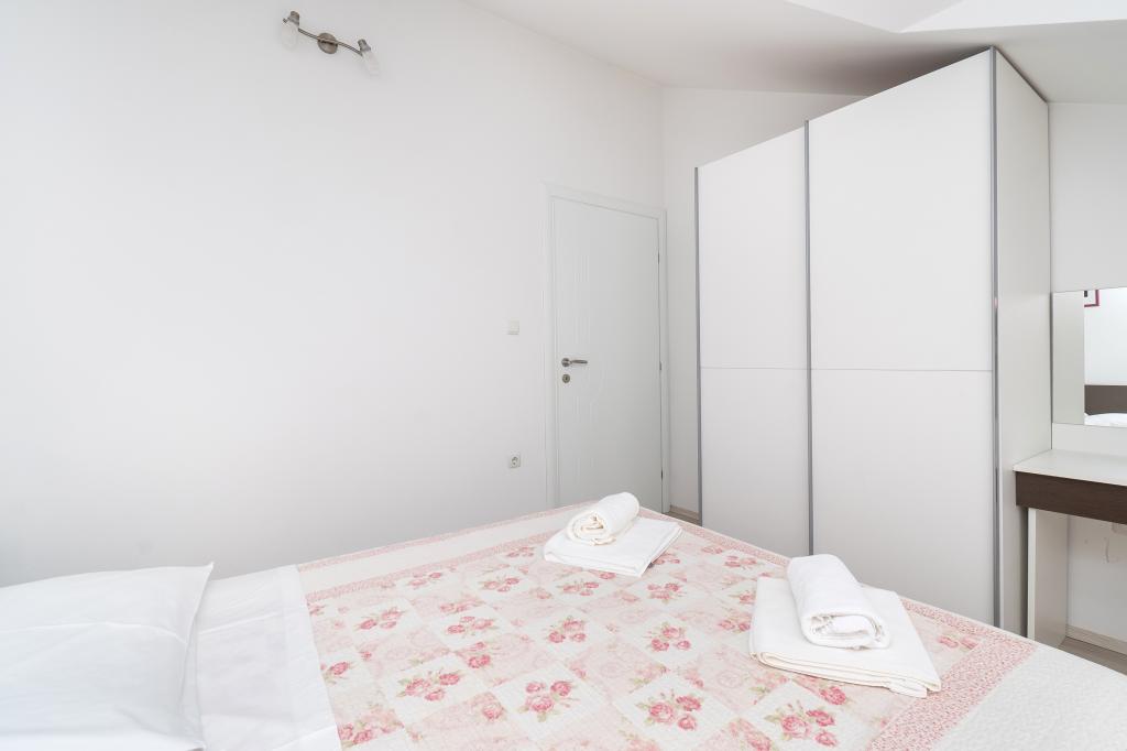 Dům se nachází v klidné oblasti. Hostit velmi srdečný a ochota. Byt je velmi čisté, upravené a moderně vybavené - v souladu s popisem a fotografiemi. Zařízení obsahuje vše potřebné pro příjemný pobyt, byt má velký balkon s krásným výhledem na moře a ostrov. Nejbližší pláž je oblázková, vhodná pro malé děti. Děkujeme hostitelům za vřelé přivítání, pomoci (a chutné zeleniny z majitelů zahradních).