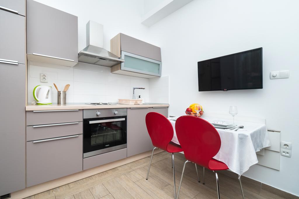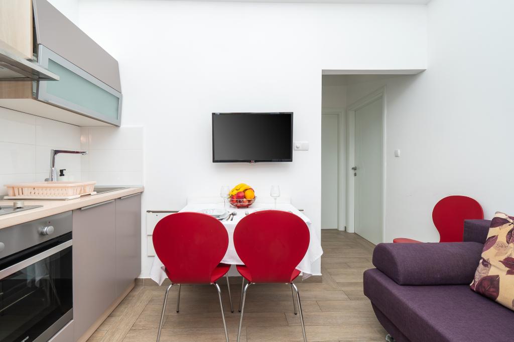 Apartmán je krásný, čistý, moderně vybavený. Majitel velmi ochotný. Určitě se budeme rádi vracet. Kolem moře je pěkná procházka do centra Vodice, kde to žije. Jinak v místě ubytování klid a pohoda, blízko moře, mělké s pískem vhodné pro malé děti. Autem 15 minut do Šibeniku na větší nákup.