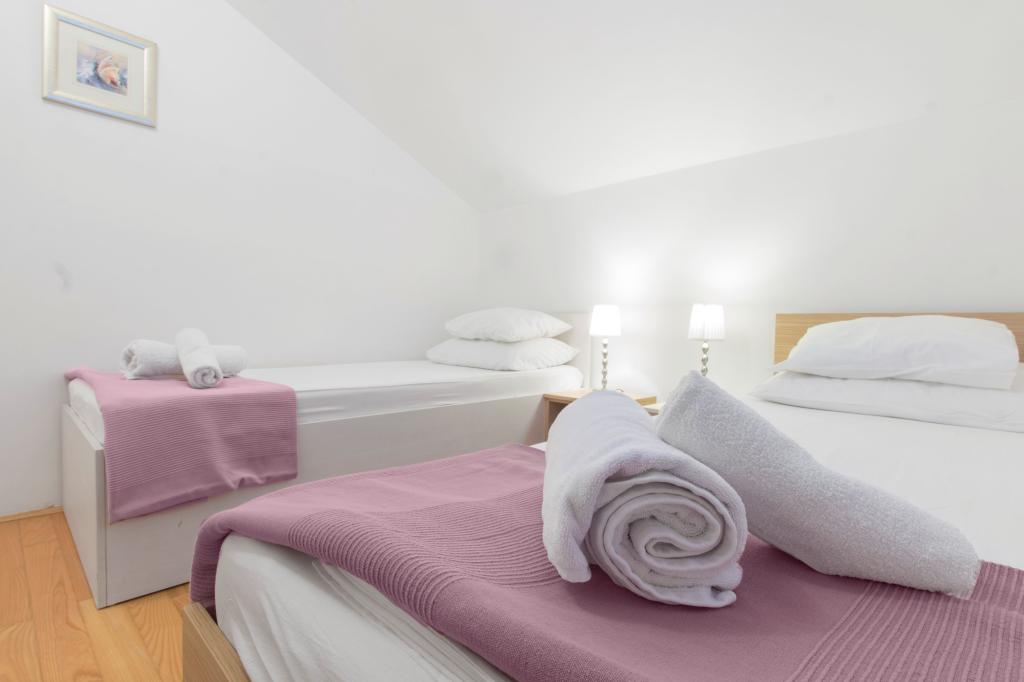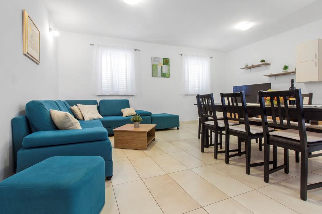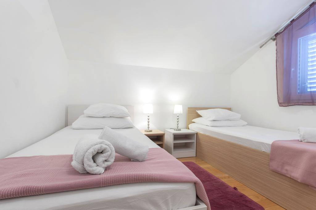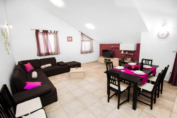 Apartmán Ružmarin je velmi pěkný, čistý, prostorný, kompletně zařízený, vhodný pro rodiny s dětmi, domácí jsou velmi milí a vstřícní, pláž je nedaleko, v blízkosti je národní park Krka, Šibenik s mnoha památkami.