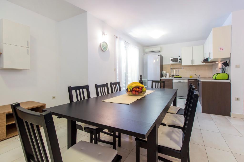 čistý, prostorný, příjemný apartmán, kompletně zařízený, velmi vhodný pro rodiny s dětmi, milý a vstřícný přístup domácích, nedaleko pláže.
