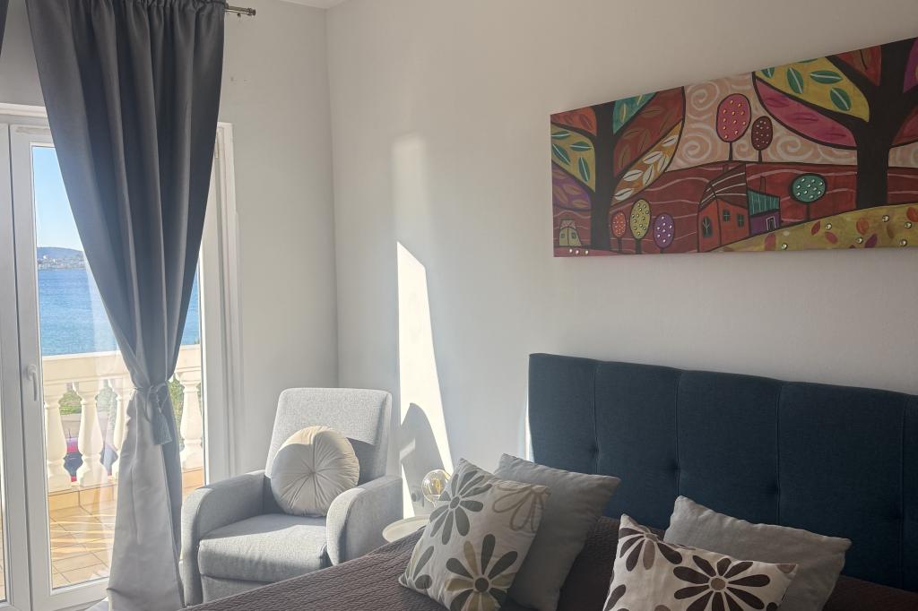 Přímo u moře, ve Srimě, v prvním patře rodinného domu, jsou k pronájmu moderní apartmány. Kvalitní inventář, klimatizace, vybavení obecně, uspokojí hosty, kteří chtějí víc. Kombinací apartmánů mohou komfortní dvoulůžkové a třílůžkové pokoje ubytovat skupinu turistů, zatímco páry, které takový komfort nepotřebují, si hostitelé pronajímají pouze pokoj s balkonem a připojeným WC. K pocitu bezpečí a relaxace přispěje i pozdní výhled na moře.