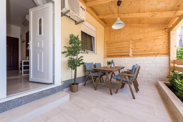 Přízemní byt s velkou terasou je nejkrásnější, jaký jsme kdy navštívili. Velká, oplocená terasa, v blízkosti pláže, parkování, vše nové, vše vybavené. Nádhera, jedním slovem. Již jsme zaplatili za příští rok. Chvála !!!