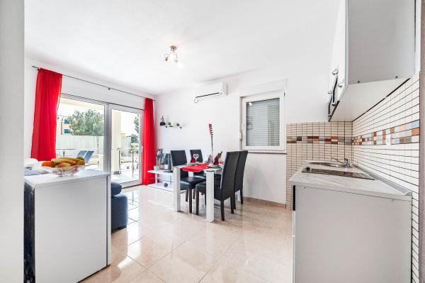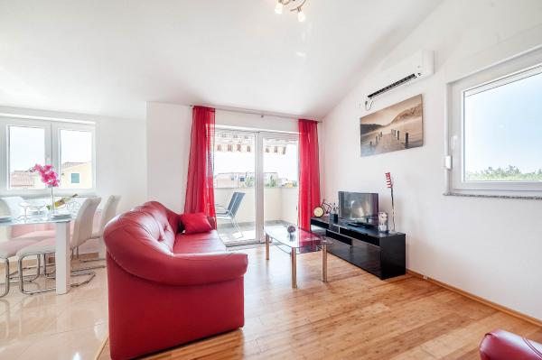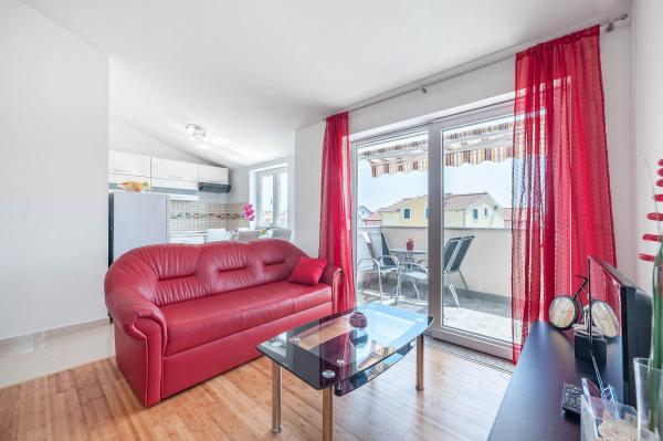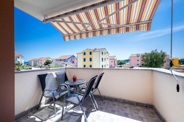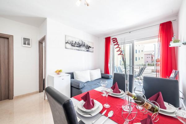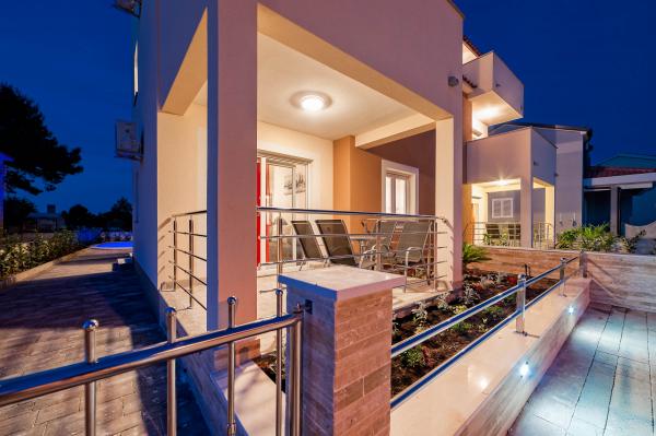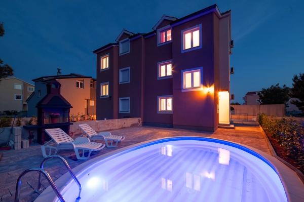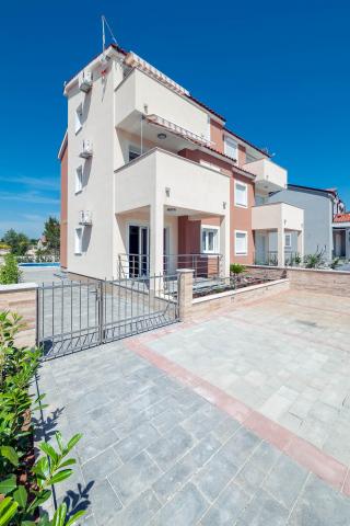 Katarina Apartmány se nacházejí v rodinném domě, v klidné části Srima. Zařízení je zcela nový zařízený moderním nábytkem. Je to jen 100 metrů od moře a krásné pláže. Všechny apartmány mají výhled na moře. K dispozici je venkovní bazén a gril s verandou se stolem a židlemi. Apartmány jsou vybaveny klimatizací, satelitní TV, velkou LCD TV.