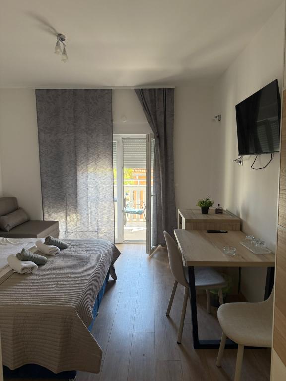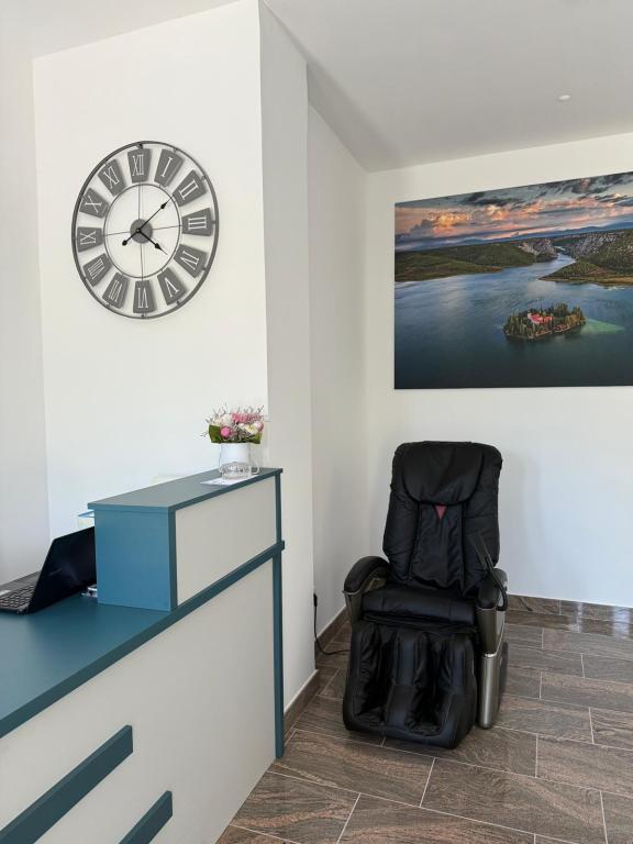 Nově zrekonstruovaný objekt se nachází v první řadě u moře, v městečku Srima, kde se nachází písčitá a oblázková pláž. V blízkosti objektu se nachází pekárna, obchod, restaurace (200 m chůze), 1 km po promenádě do Vodice. K dispozici jsou dvoulůžkové pokoje s přistýlkou, ideální pro jednotlivce, páry a obchodní cestující. Nabídka zahrnuje studiový apartmán s kuchyňským koutem a apartmány se samostatnou ložnicí. Ubytovací jednotky se nacházejí v 1. a 3. patře budovy. V objektu je výtah. Každý pokoj je samostatnou ubytovací jednotkou.