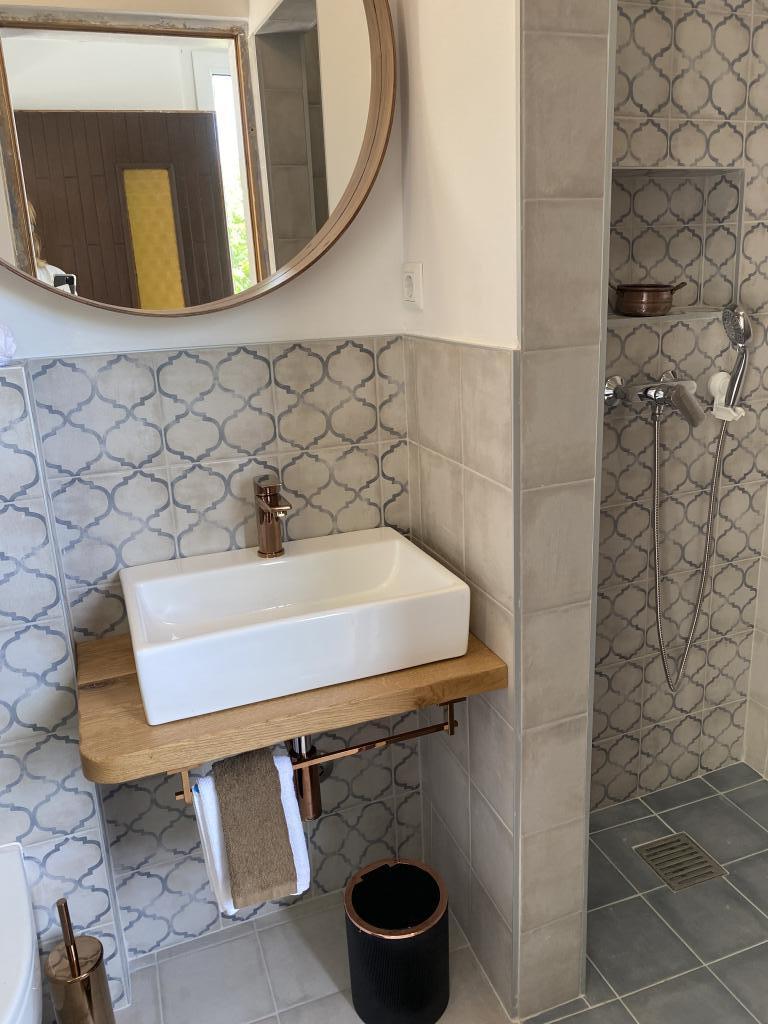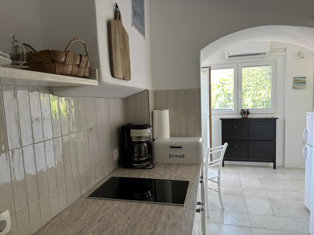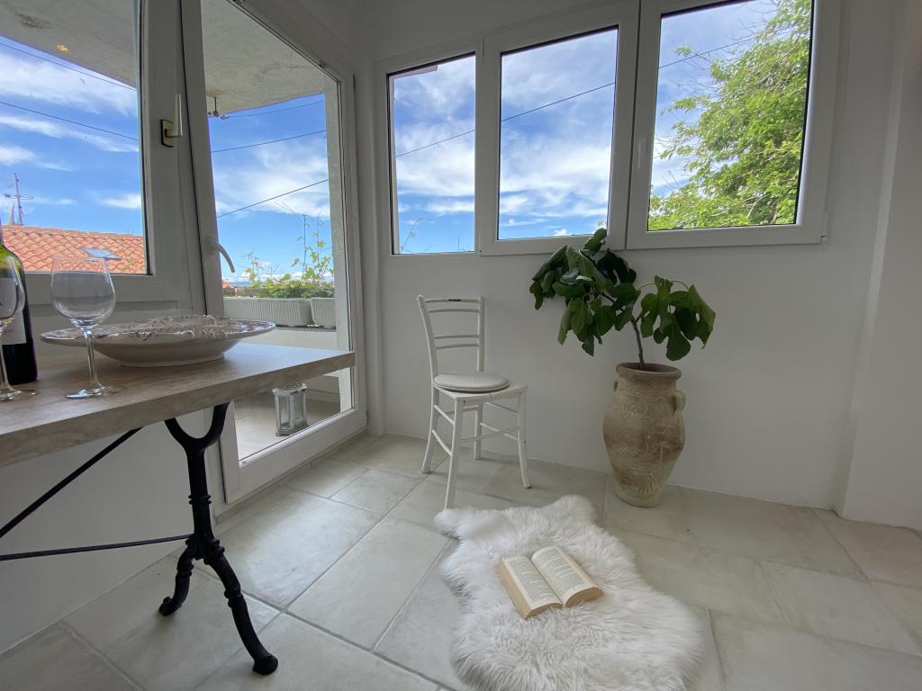 Dům se nachází 50 metrů od písečné a oblázkové pláže. Na pláži nejsou žádné davy lidí a moře je křišťálově čisté. V domě jsou dva byty. Byt je nově zrekonstruovaný a plně vybavený. Apartmán má dvě ložnice s manželskou postelí, plně vybavenou kuchyň, koupelnu a balkon s výhledem na moře. Jedno parkovací místo je zajištěno 100 m od domu.