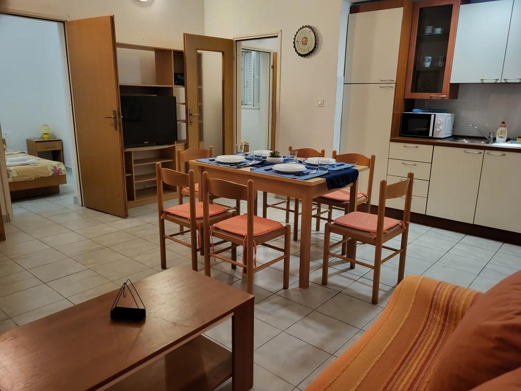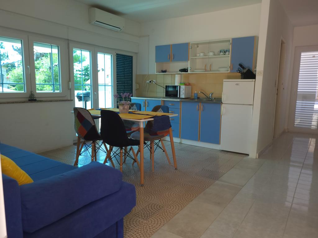 Plně vybavené apartmány, internet, TV, klimatizace, gril, terasa. Vzdálenost k betonové plošině s lehátky 30m, vzdálenost k malé písečné pláži 30m, vzdálenost k velké písečné pláži 200m