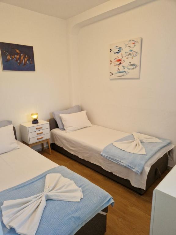 Moderně vybavené apartmány v klidné části Stara Novalja, nedaleko moře. 5 minut chůze na první pláž, 10 minut autem do centra města.