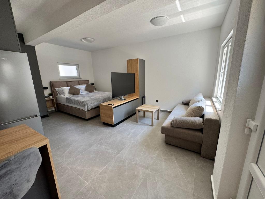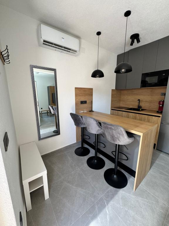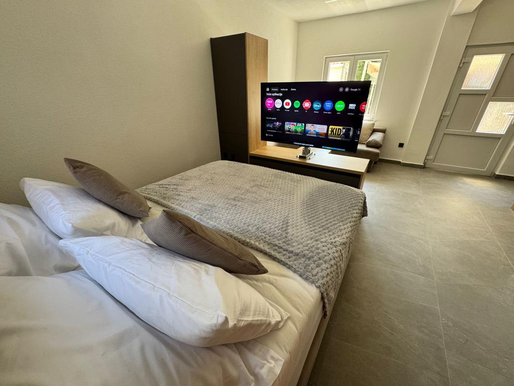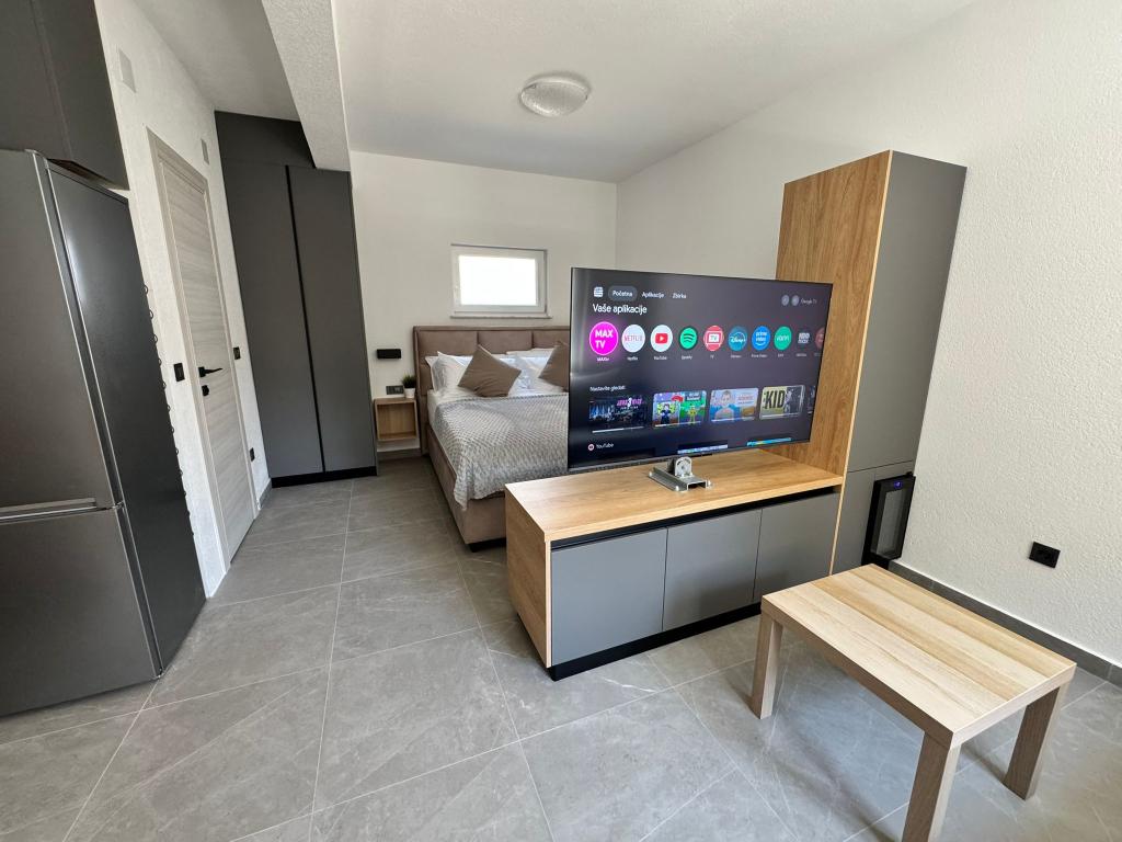 Nově zařízený a kompletně zrekonstruovaný studiový apartmán se nachází v samostatné budově v klidné části Starigradu, pouhý 1 km od vstupu do Národního parku Paklenica a 500 m od moře, což z něj činí ideální volbu pro milovníky moře a přírody. Apartmán je určen pro 3 osoby a je vybaven vším, co potřebujete pro příjemnou a relaxační dovolenou: klimatizací, Wi-Fi, Google TV (Netflix a MaxTV), plně vybavenou kuchyní (myčka, mikrovlnná trouba, gril, kávovar...), moderní koupelnou (pračka) a kvalitní postelí. Hosté mají také přístup na příjemnou terasu s altánkem a grilem na zahradě. V blízkosti apartmánu se nachází Tommy, restaurace, lékárna, čerpací stanice, zatímco k moři se dostanete pěšky za 5 minut nebo autem (1 minuta). Parkování je zajištěno vedle budovy a hostitelé jsou vždy k dispozici.