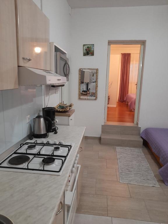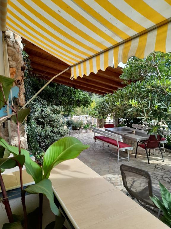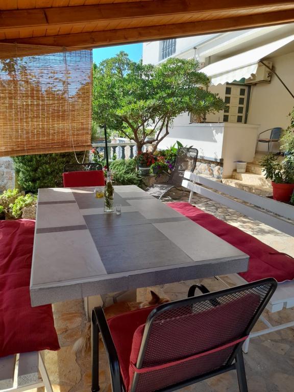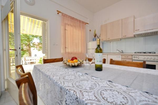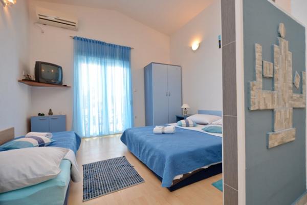 Samostatný rodinný dům s 5 obytnými zónami v klidné části Starigradu. V blízkosti moře a pláže, restaurace, hřiště, centrum. V blízkosti Národního parku. V areálu se nachází malá hospoda a grilování zdarma. Každý apartmán má vlastní terasu (balkon s výhledem na moře) a dva velké stoly ve dvoře.