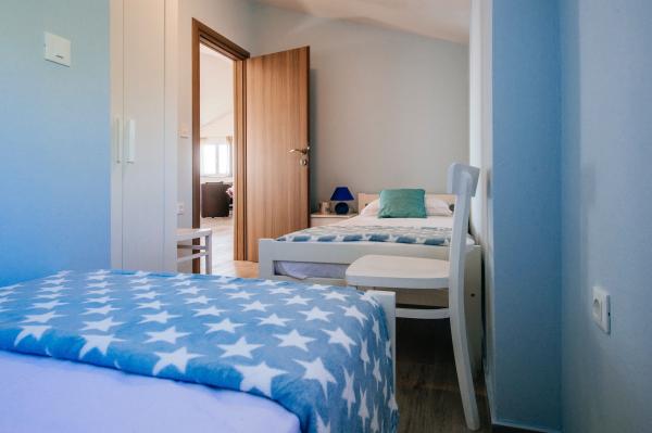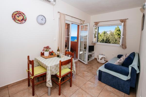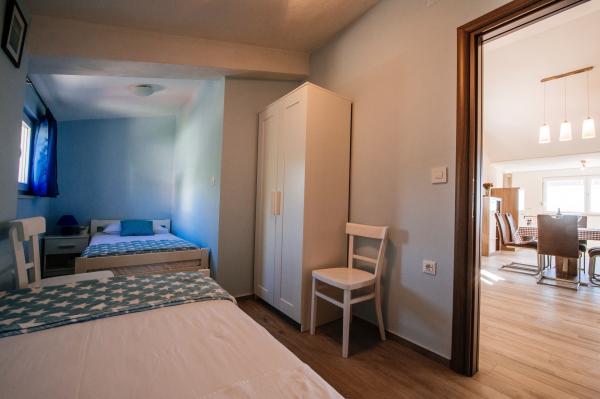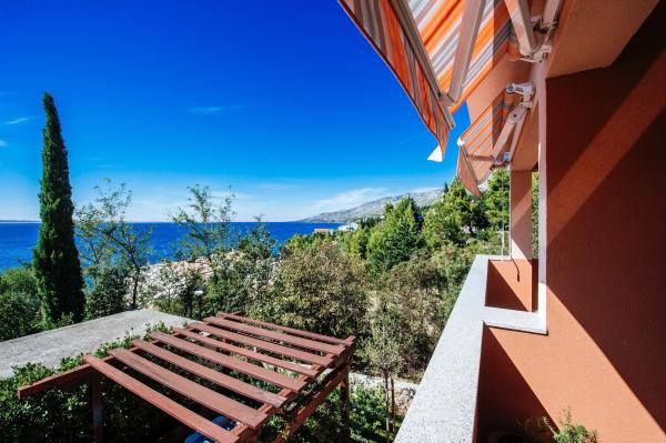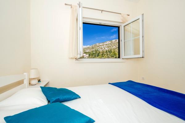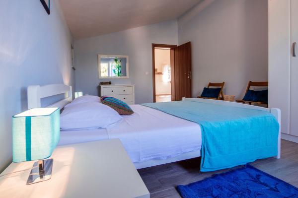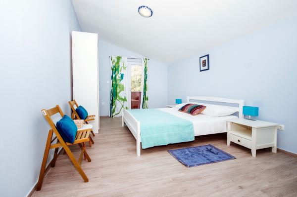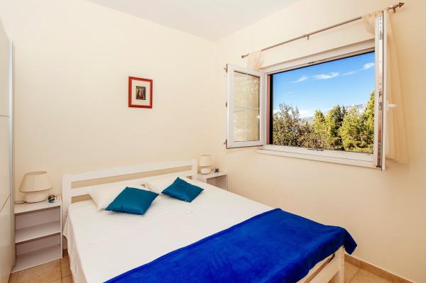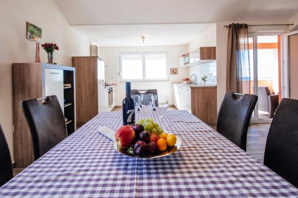 moderně vybavené apartmány s balkonem, dvěma ložnicemi a obývacím pokojem s kuchyní, výhledem na moře v klidné části Starigradu. 60 m od moře a 1,5 km od národního parku. Vzdálenost od centra 500 m. Parkování zajištěno ve dvoře.