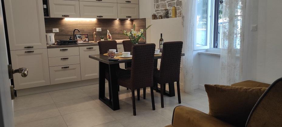 Ostrov Šolta, STOMORSKA - Pociťte ducha starého dalmatského města v apartmánech umístěných v soukromém domě uprostřed malebného nábřeží (první řada u moře). Z terasy je krásný výhled na místo, moře, záliv. Kavárny, restaurace, obchody, pláže... vše je v blízkosti bytu, jen pár minut chůze. Větší apartmán má dvě ložnice, dvě koupelny a obývací pokoj s kuchyní a terasou. Menší byt má kuchyň s obývacím pokojem, samostatnou ložnici s koupelnou. Před apartmánem je posezení. Apartmány jsou navrženy a vybaveny tak, aby vyhovovaly všem vašim potřebám, stačí přijít a užít si to. Dům má zelený dvůr vyzdobený v dalmatském stylu, krb a venkovní sprchu. Hostitelé jsou hostům k dispozici, stejně jako parkovací místa