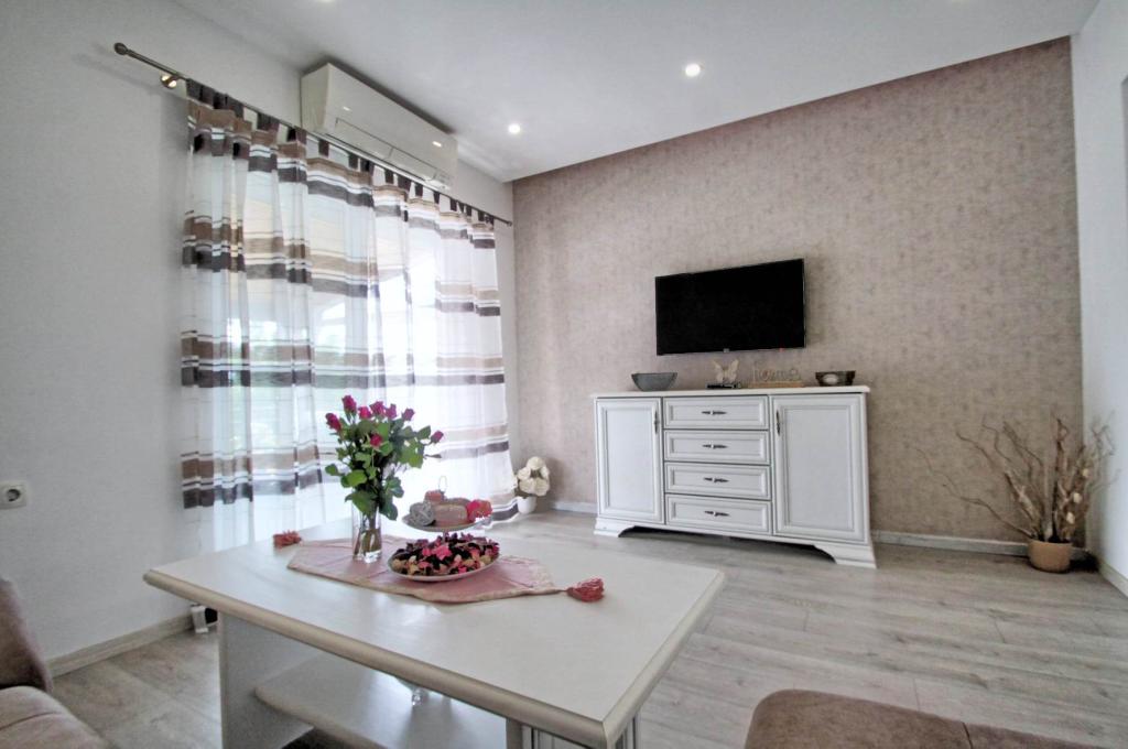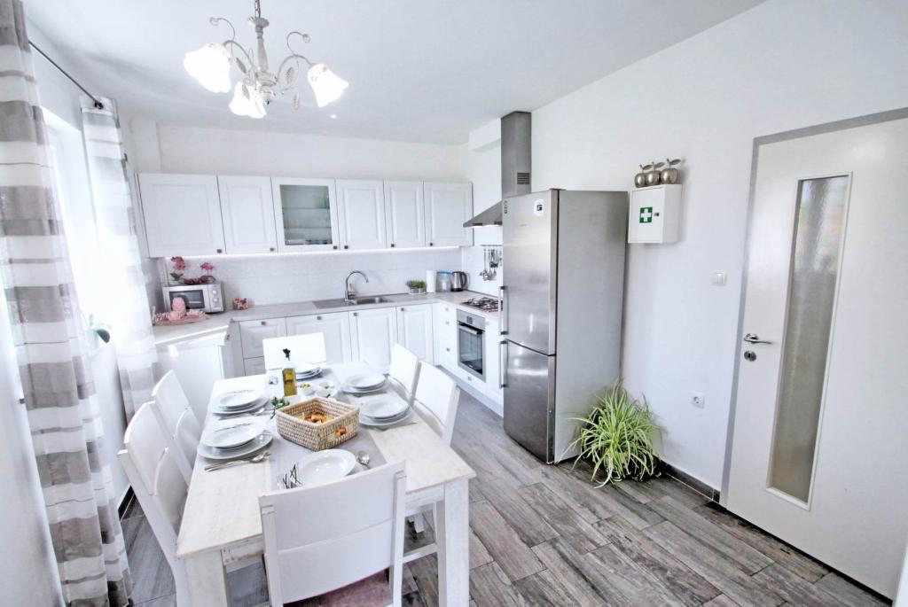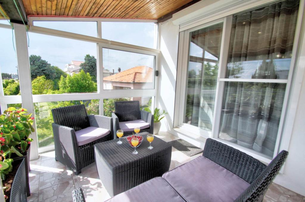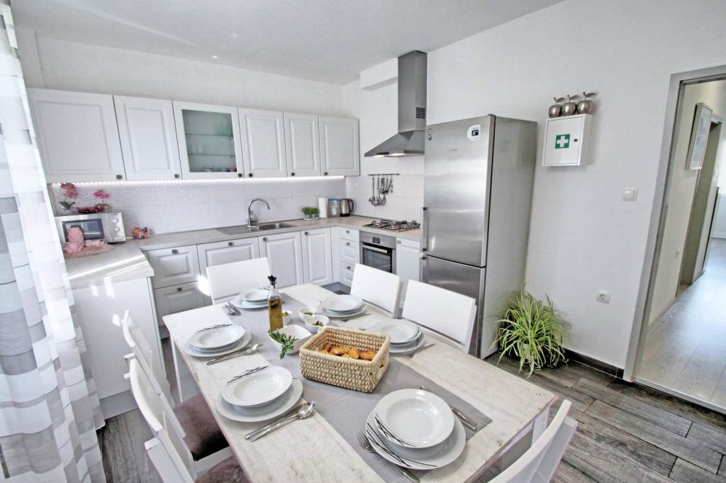 Všechna doporučení pro apartmán, byli jsme tam nedávno s našimi dětmi a bylo to úžasné, počínaje pohostinností paní Elizabety, pak čistotou a vybavením apartmánu, až po blízkost pláže a veškeré potřebné vybavení (obchod, kavárna, rychlé občerstvení, restaurace). Pláž bohatá na přírodní stín je pár kroků, je zde i dětský park a volejbalové hřiště, je zde dostatek mělčin, takže je vhodná pro děti a pro všechny, kteří chtějí klidné prostředí bez přílišné tlačenice a hluk. Pokud jde o byt, má opravdu vše, co potřebujete, je prostorný, čistý, krásně a moderně zařízený, plný krásných detailů, díky kterým je pobyt ještě příjemnější. Velkým plusem pro nás byl dětský pokoj s hračkami, děti si to moc užily Uvítá Vás velká krásná terasa s výhledem na moře a věřím, že stejně jako my se budete cítit jako doma