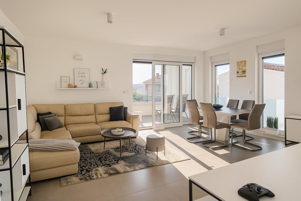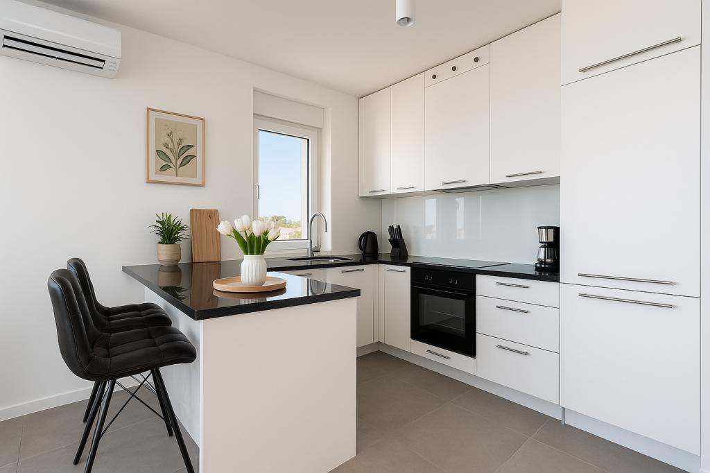 Byt je jako na obrázcích, pěkně zařízený, super vybavený, čistý a uklizený. Je tu spousta místa k pobytu, k uložení věcí také. Terasa je nejlepší částí bytu, protože je obrovská a má výhled na moře:) Příjemná komunikace s majiteli, vše bylo jak jsme se domluvili. Rozhodně doporučuji!