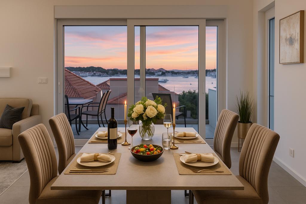 Tento byt je ideálním místem k odpočinku. Prozkoumejte památky a místní zajímavosti Sukošanu – je tu tolik k vidění a dělání! Jako apartmán s vlastním stravováním najdete vše, co potřebujete pro dokonalý pobyt. V kuchyni je lednice, varná deska, trouba, rychlovarná konvice a mrazák. Byt je ideálním místem k odpočinku a nabízí televizi a připojení k internetu. Tento apartmán má 2 ložnice a pohodlně se v něm vyspí 6. V první ložnici najdete manželskou postel King. Druhá ložnice obsahuje 2 samostatné postele. V obývacím pokoji je rozkládací gauč. Je zde jedna koupelna. V koupelně je také pračka. Povlečení a ručníky jsou zahrnuty, aby byl váš pobyt příjemnější.