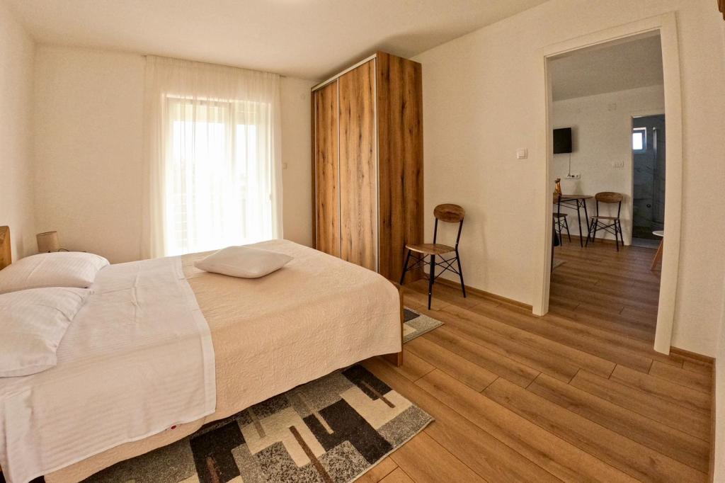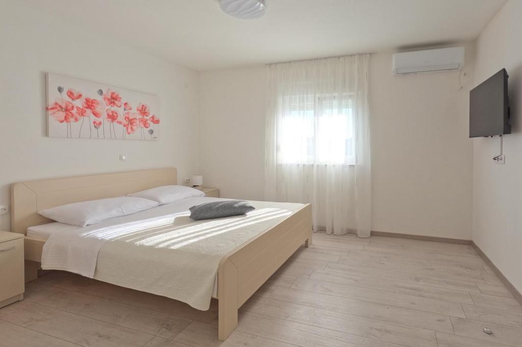 ZBRUSU NOVÉ APARTMÁNY IVE JSOU IDEÁLNÍ PRO VAŠI DOVOLENOU Apartmány Ive se nacházejí v Sukošanu, pouhých 300 metrů od pláže Mala Makarska a jen 10 kilometrů od krásného Zadaru. Apartmán v přízemí má 2 ložnice, velký obývací pokoj a kuchyň a také velký balkon. Apartmán je vlastně celé patro domu. Apartmán v patře má také dvě ložnice, obývací pokoj, kuchyň, dvě koupelny a terasu. Apartmán je vybaven funkční kuchyní (lednice, sporák, myčka nádobí pouze v přízemí, nádobí...), televizí, klimatizací, pračkou, velkými manželskými postelemi. Na požádání můžeme přidat i dětskou postýlku. Pozemek o rozloze 900 m2 má 3 parkovací místa a jedno garážové stání, venkovní gril, zeleň pro děti... V okruhu 300 metrů se nacházejí obchody, restaurace, plážové bary, dětská hřiště, rychlé občerstvení...