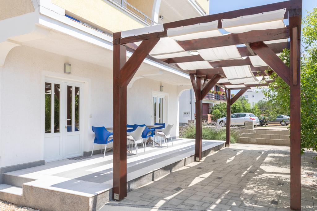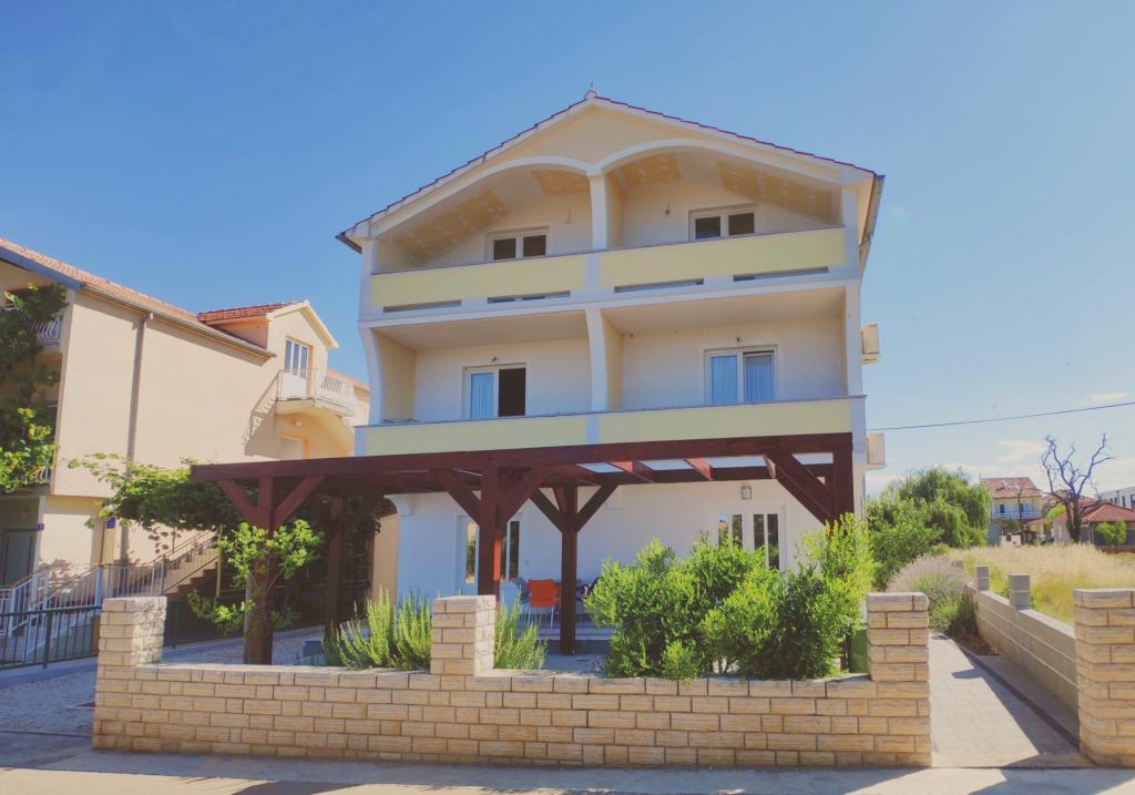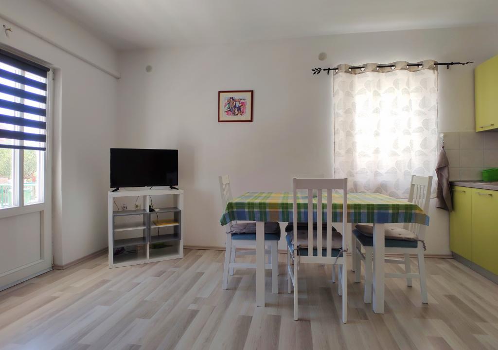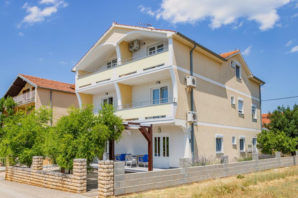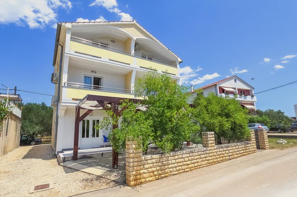 Apartmány jsou 3 minuty chůze od moře, centra města a obchodů a 5 minut od pláže. Nachází se v klidné ulici nedaleko centra města. Parkování je zajištěno ve dvoře. Dva byty jsou v přízemí budovy a každý má 8 m² terasu v přední části a jeden je nově zrekonstruovaný ve druhém patře, v podkroví budovy s balkonem 6 m².