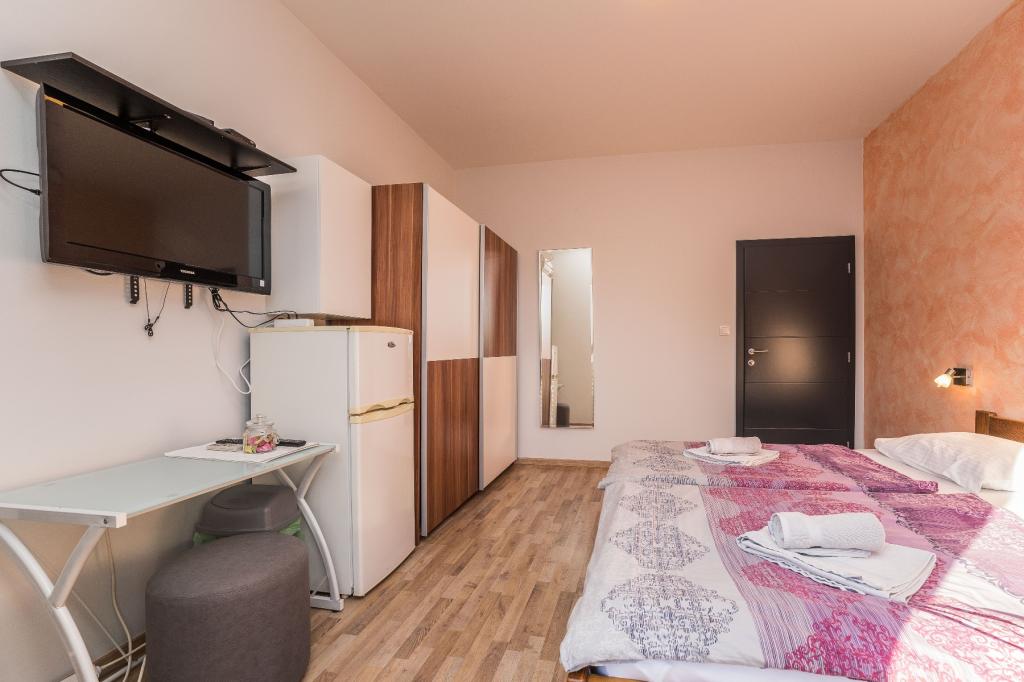 Přečtěte si více Ubytovací jednotkyCheck-in do apartmánu je možný po 15:00 (po dohodě i dříve) a check-out je možný pouze do 10:00. Záloha činí 30 % z celkové ceny rezervovaného ubytování. Zbytek částky se platí na recepci, výhradně v hotovosti. Domácí mazlíčci jsou povoleni, poplatek je 7 € za noc a zvíře.