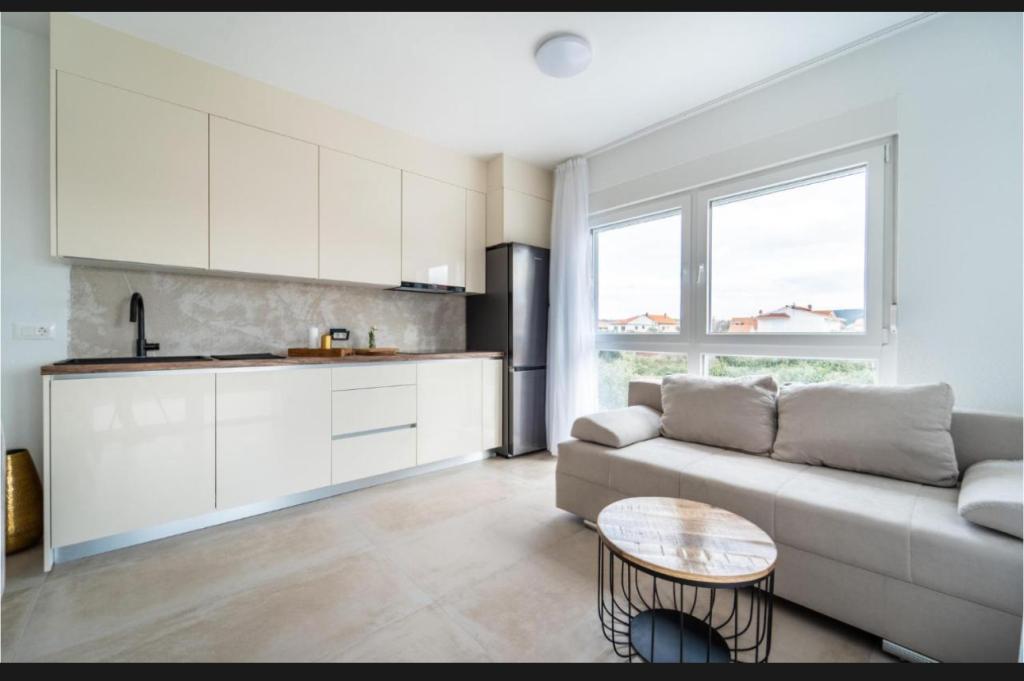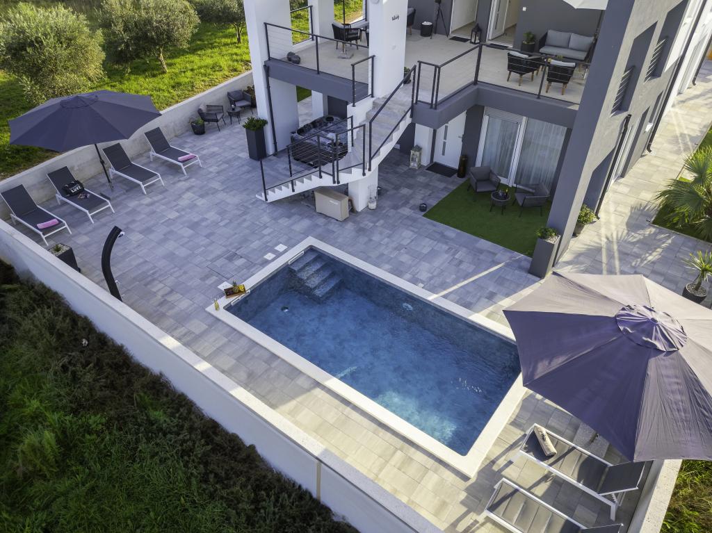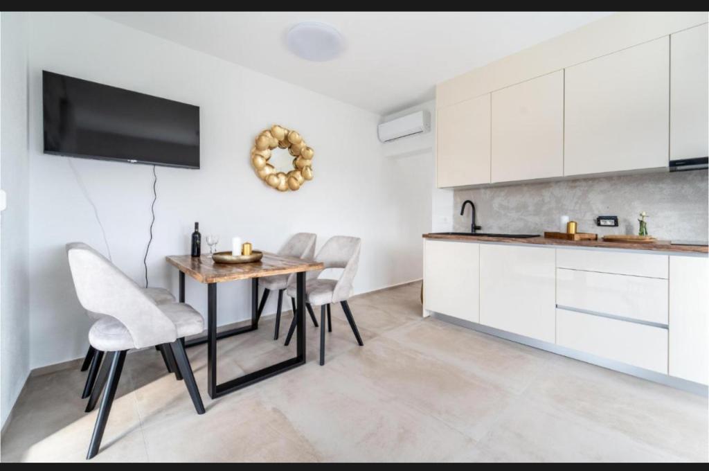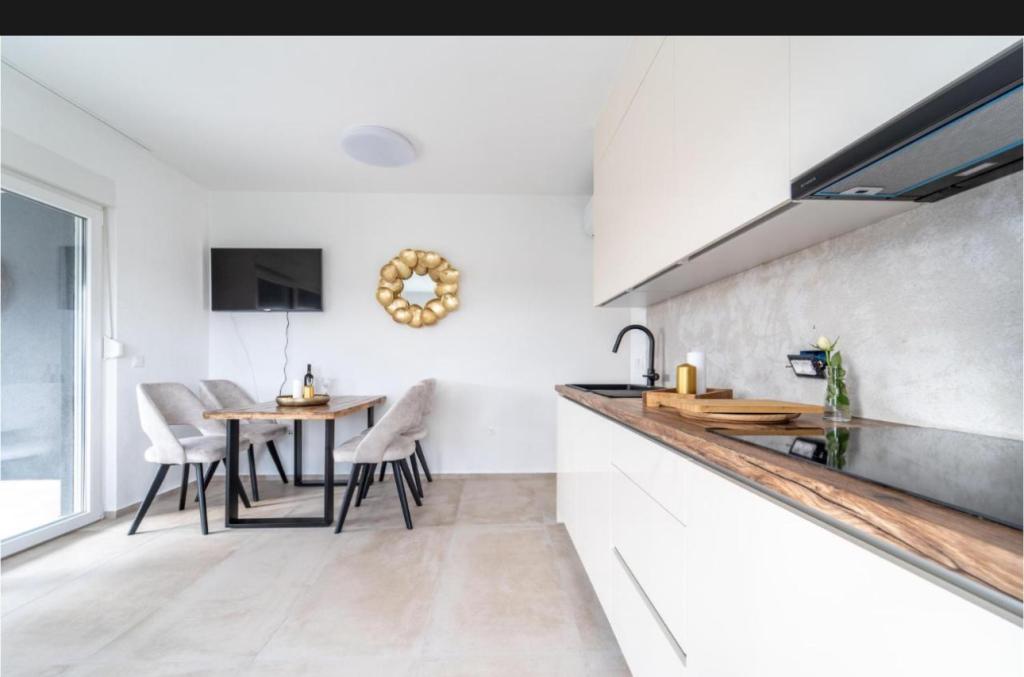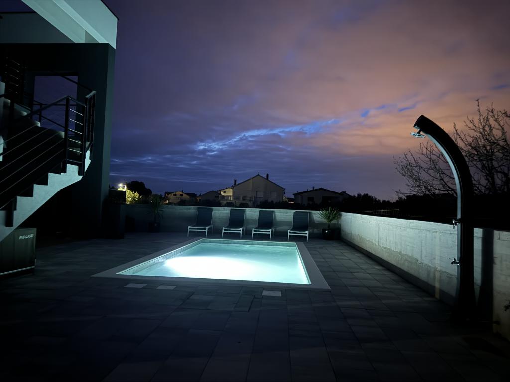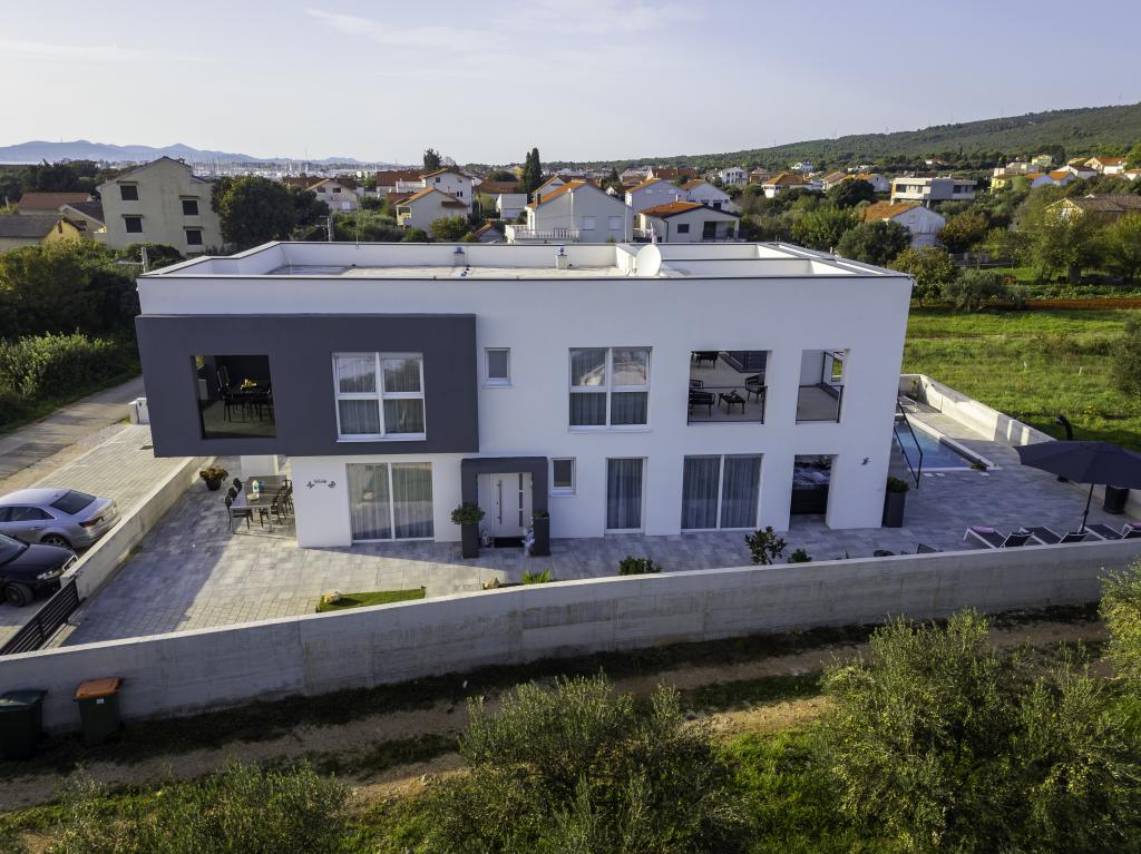 Tento krásný dům k pronájmu se nachází v klidném a malebném prostředí Sukošanu, ideální pro rodiny a páry hledající dovolenou. Apartmán nabízí prostorné a světlé pokoje, moderně zařízený obývací pokoj, plně vybavenou kuchyň a pohodlný balkon a velkou terasu s výhledem na přírodu. Kromě toho nabízíme vyhřívaný bazén pro naše hosty, kteří přijedou v sezóně 2026. Chceme našim milým hostům poskytnout ještě více relaxace - proto s radostí oznamujeme, že nyní nabízíme masážní vanu (jacuzzi)! Nedaleko se nacházejí pláže, restaurace a obchody, díky čemuž je toto místo ideální pro objevování místních atrakcí. K dispozici je veškeré potřebné vybavení pro příjemný pobyt, včetně Wi-Fi, klimatizace a parkování. Přijďte a užijte si nezapomenutelnou dovolenou!