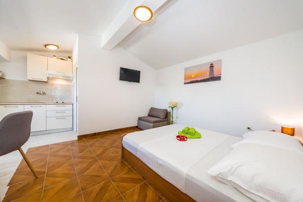Pobytová taxa je v ceně. Doklad o potvrzení rezervace při rezervaciWelcome drink v ceně. Příznivé ceny místní zeleniny, ovoce, víno a brandy. Organizovat jednodenní výlety do národního parku Kornati. Pomoc při zvládání. Schopnost ukládat gril majitele.