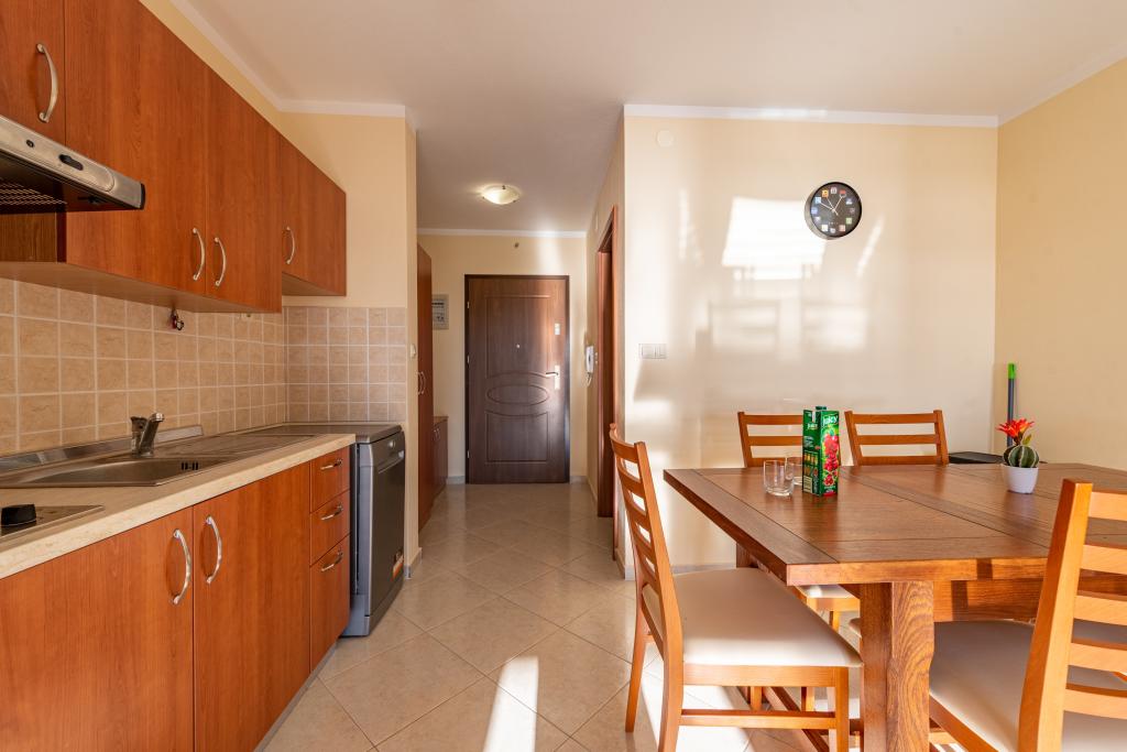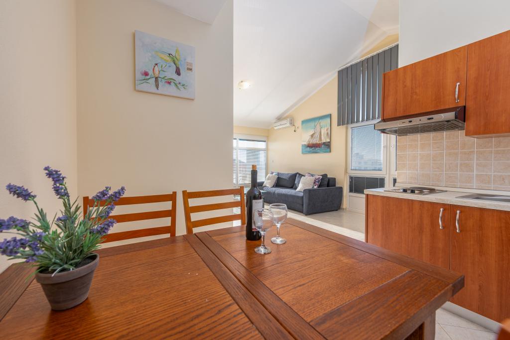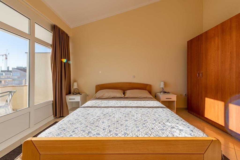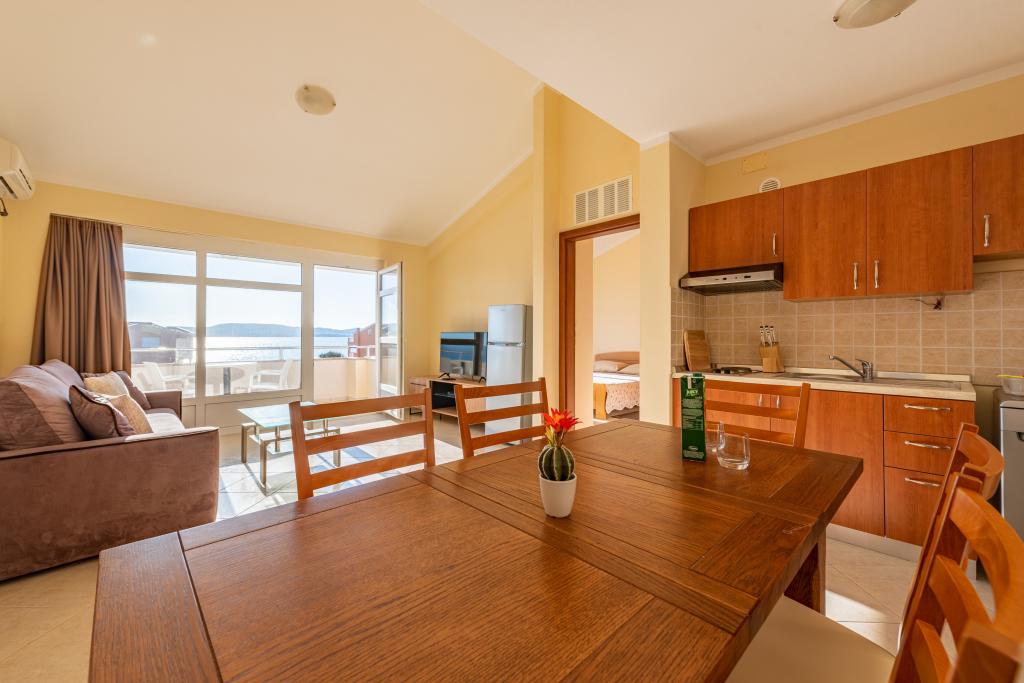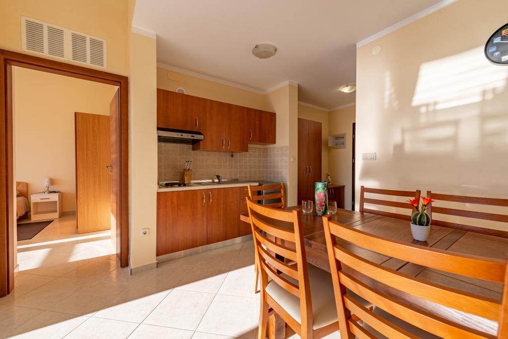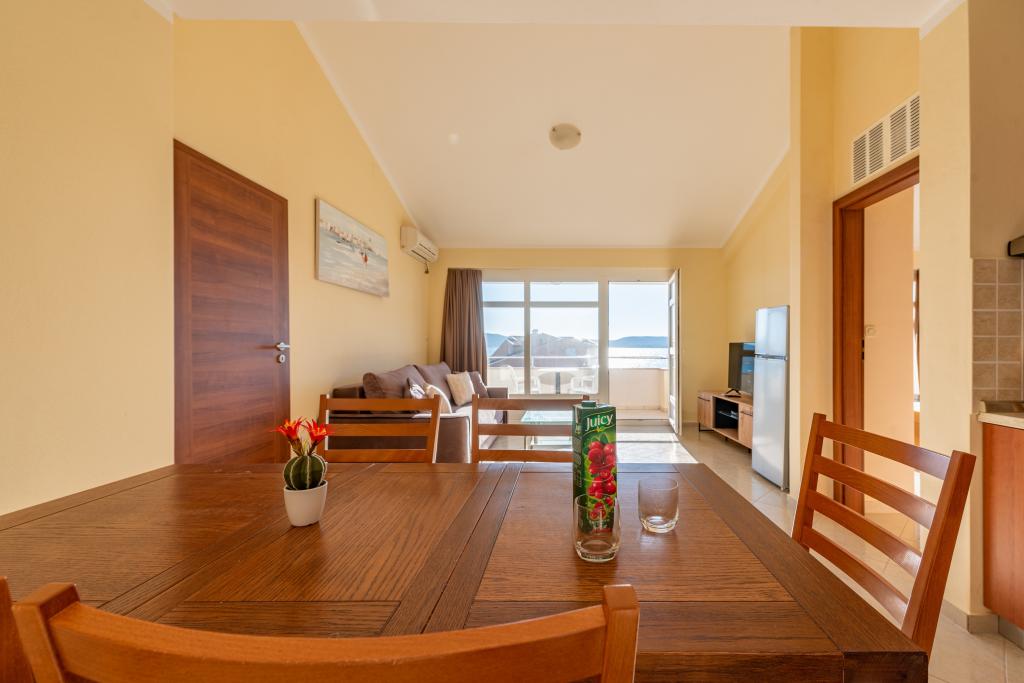 Byt je dobře vybavený a má dva balkony s krásným výhledem na moře. Klimatizace umožňuje regulovat teplotu v místnosti v závislosti na počasí. Poloha je ideální pro rodiny s dětmi, téměř přímo na pláži, ale přesto klidná. V blízkosti se nachází dětská pláž s písčitým dnem. Personál je přátelský a ochotný.