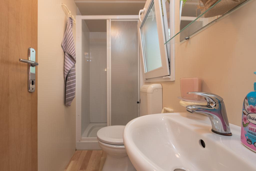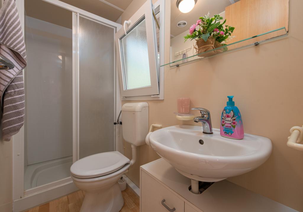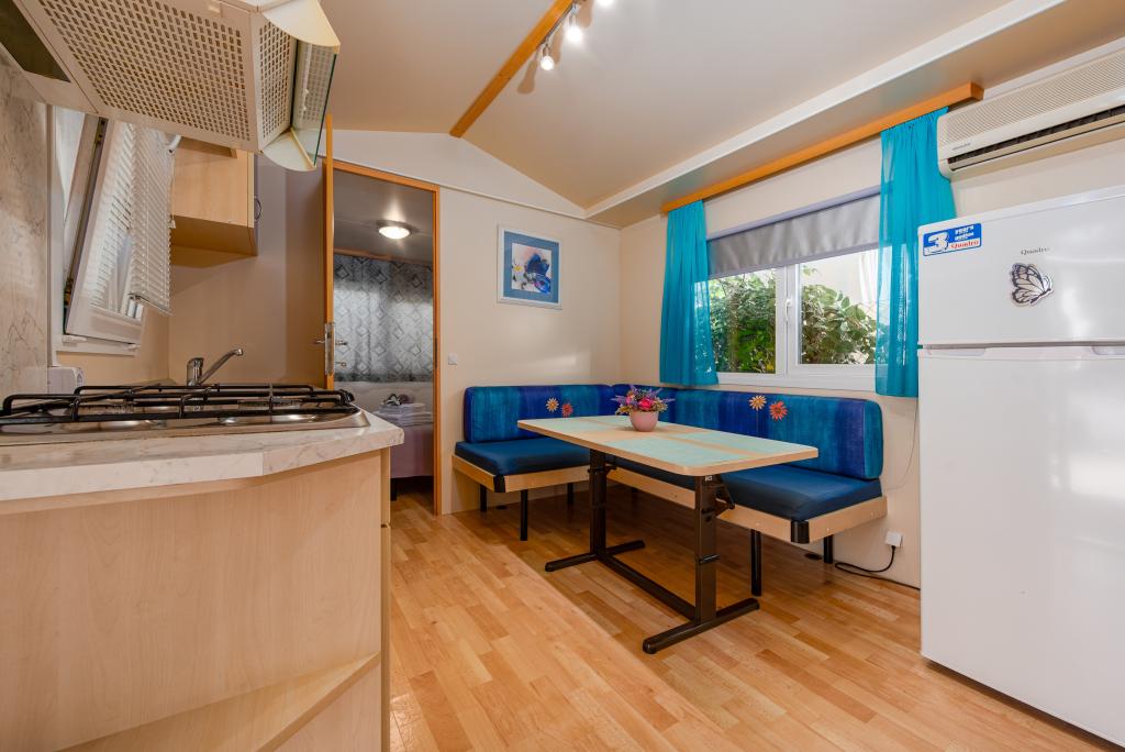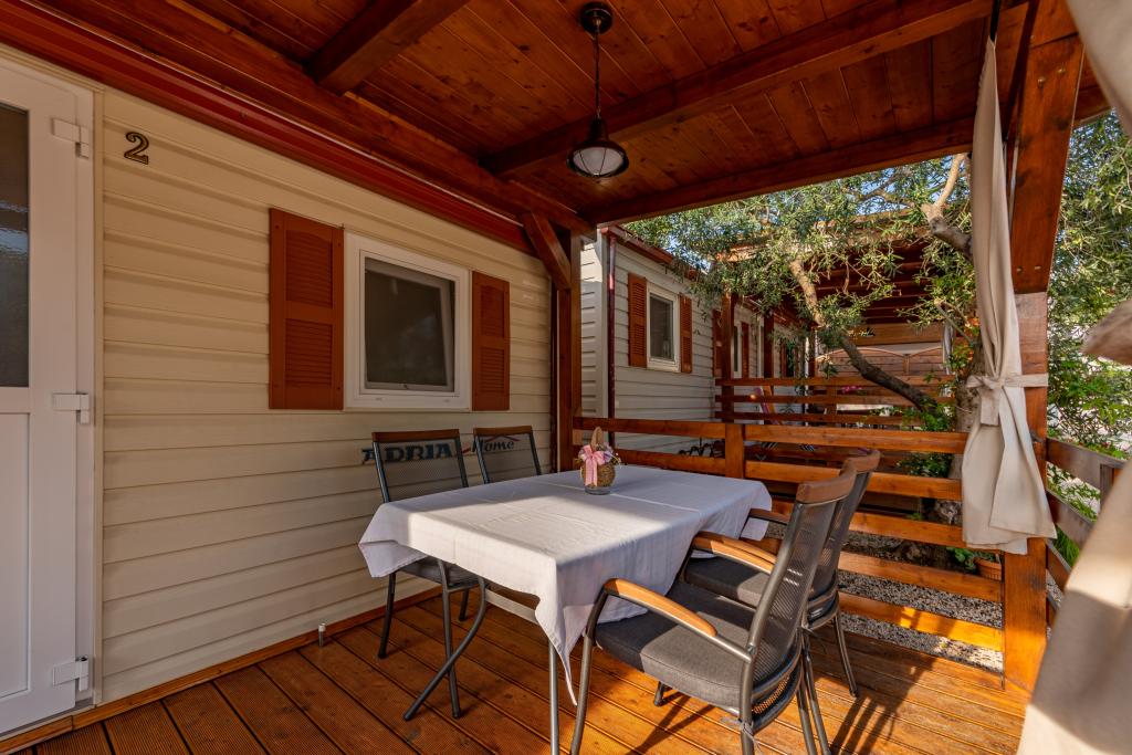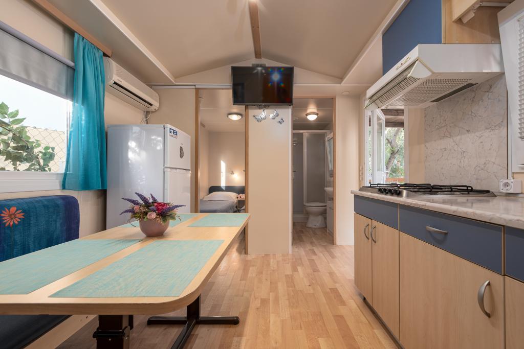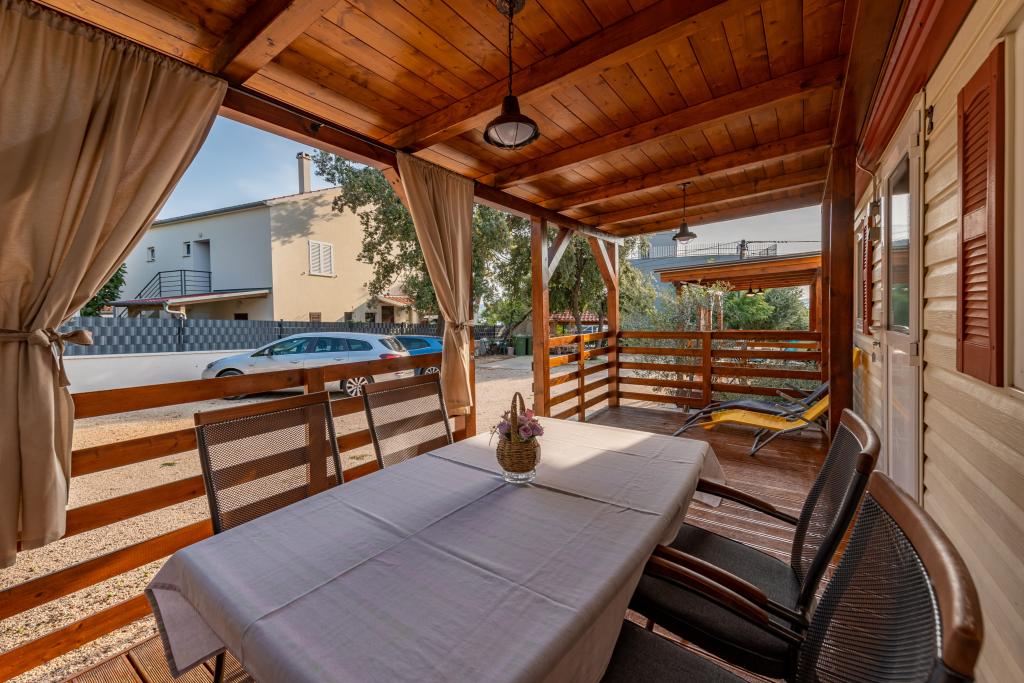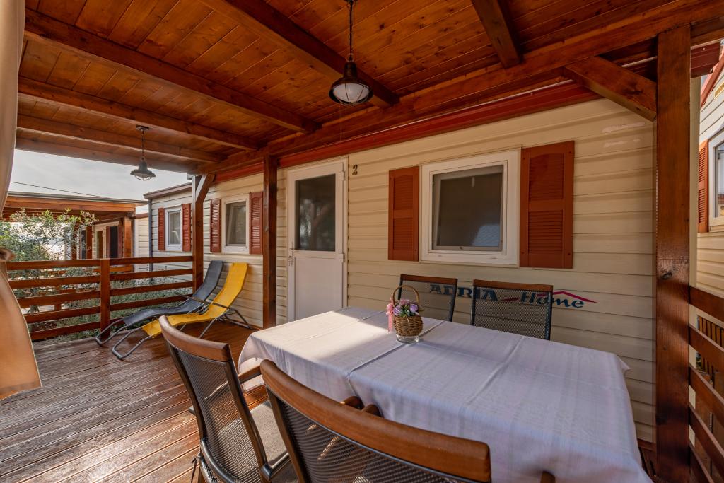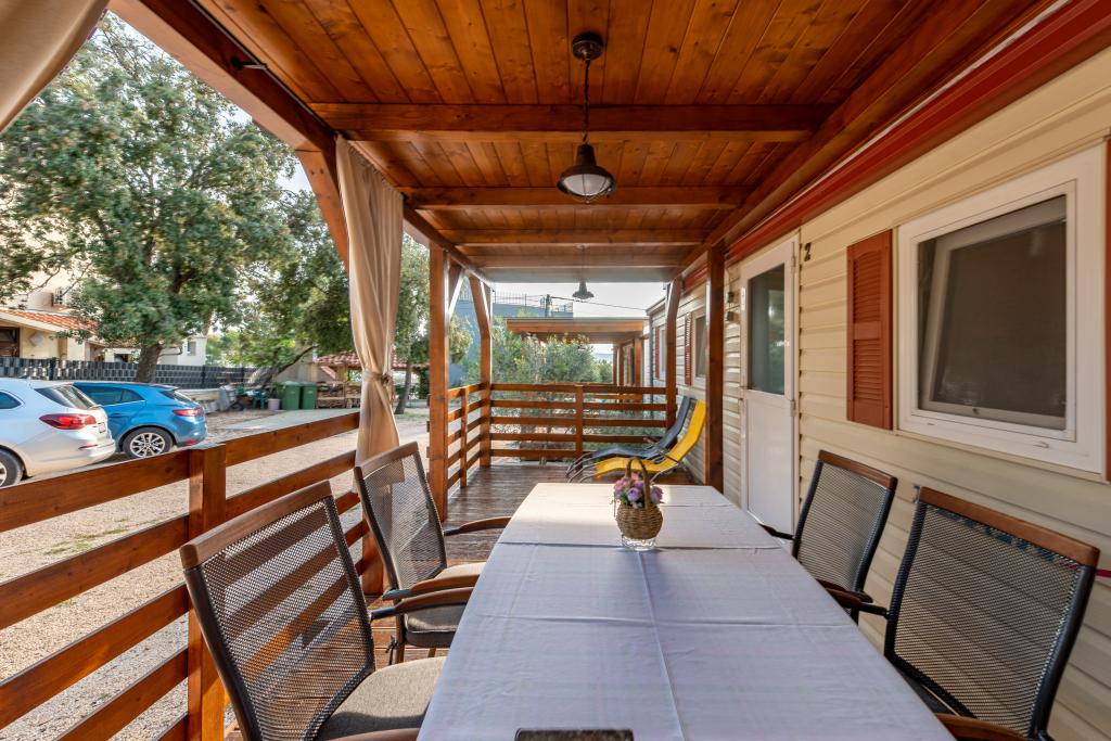 Krásně zařízený mobilní dům se dvěma pokoji, každý pokoj má vlastní koupelnu a WC a velkou terasu, nový bazén s vyhřívanou slanou vodou, moderní a pohodlná lehátka, která jsou zdarma a navíc velmi milí a přátelští hostitelé kteří jsou vám vždy k dispozici. Prostě perfektní.