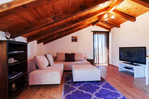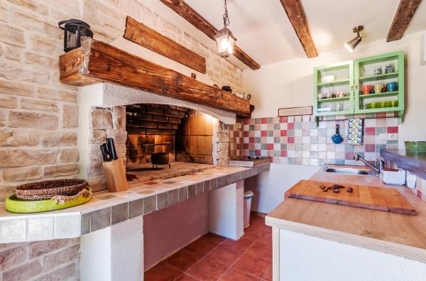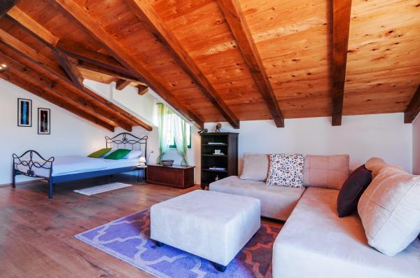 Prázdninový dům Rita je nově postavený objekt v klidné části Sukošanu. Zdobí tradiční kamenné rysy, rustikální nábytek, krb uvnitř domu ... V přízemí je ideální pro socializaci, zatímco na podlahové plochy pro odpočinek a spánek! V pokoji je manželská postel a pohovka, která převádí do postele kouře. 160 x 200. Dům má velký dvůr, soukromé parkoviště, gril, houpačka, pískoviště ... Vedle domu je terasa s pergolou. Těšíme se na Vaši návštěvu !!