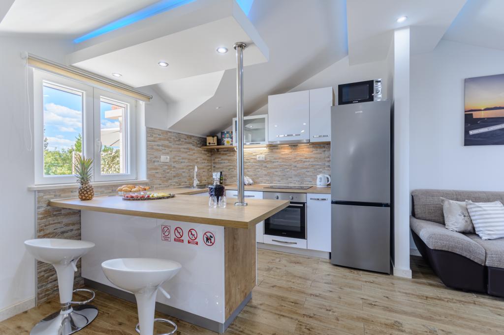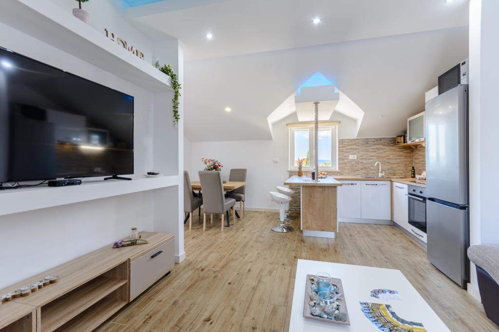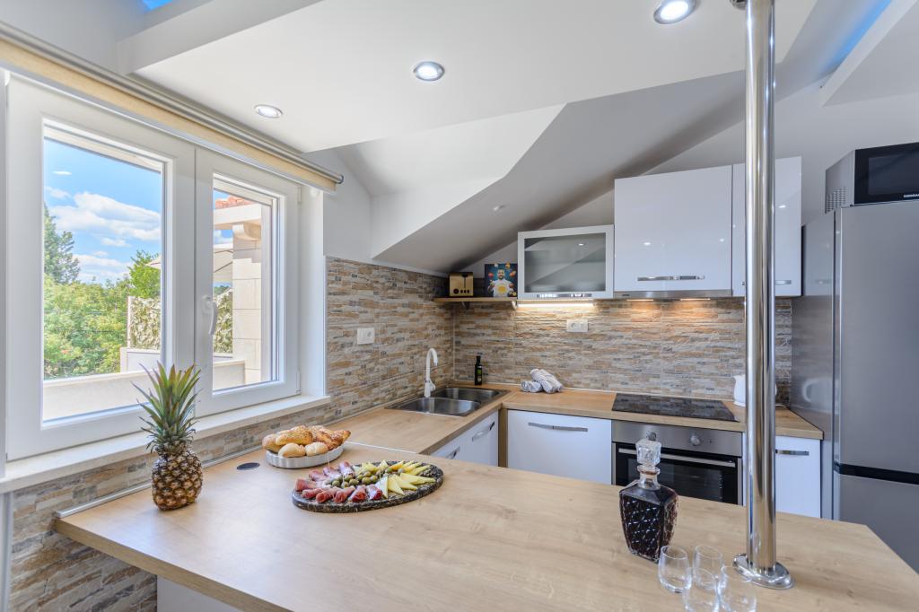 Vítejte v našem okouzlujícím apartmánu, který se nachází v samém centru Sumartinu na krásném ostrově Brač. Apartmán, který se nachází pouhých 100 metrů od moře, nabízí perfektní kombinaci pohodlí a komfortu. Apartmán pojme až 5 osob (4+1) a je ideální pro rodiny, páry nebo přátele, kteří si chtějí odpočinout a užít si kouzlo ostrova. Užijte si klidný pobyt v docházkové vzdálenosti od pláží, restaurací a přístavu. K dispozici je také zabezpečené parkovací místo. Těšíme se na váš příjezd!