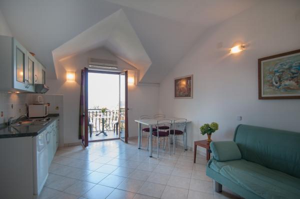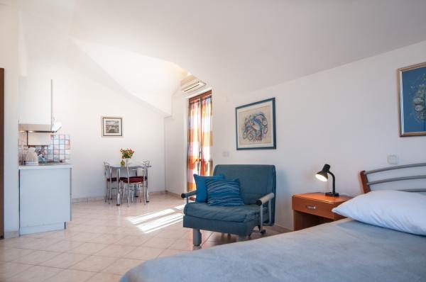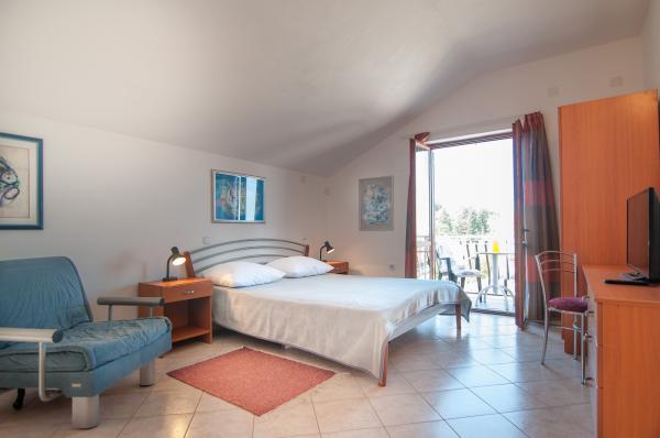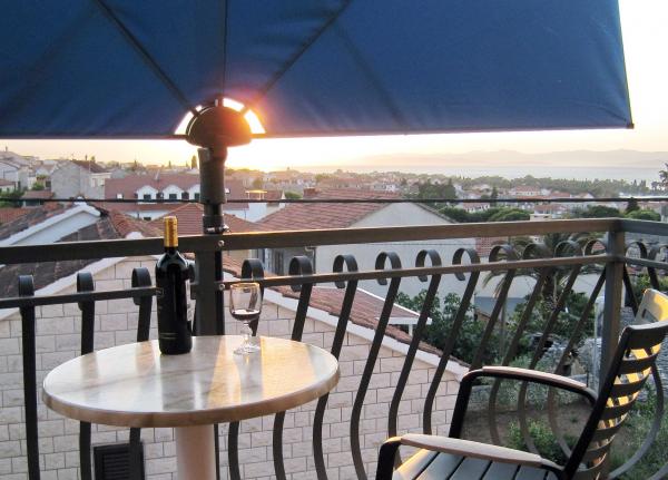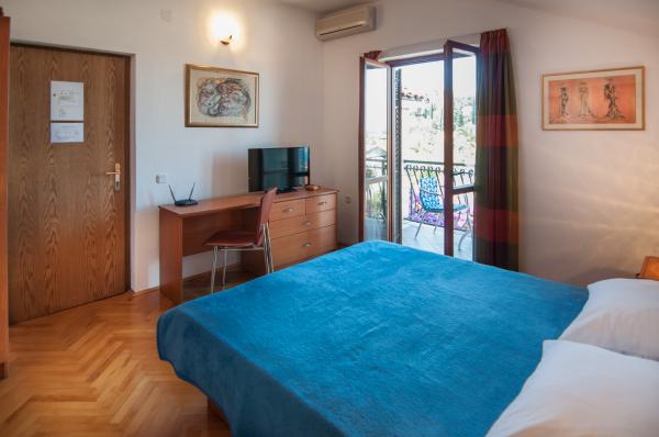 Půjčit čtyři jednotky v rodinném domě pozicioniranoj v jihovýchodní části starého centra města, v klidné a žádané lokalitě. Flexibilní rozvrh a zařízení umožňují použití kombinace jednotek. Všechny apartmány a pokoje mají terasu nebo balkon s výhledem na město a moře, který je vybaven klimatizací, satelitní TV a mají přístup k Wi-Fi. K dispozici je také parkovací stání a dvorek grilování. Pračka a žehlička se žehlicím prknem jsou k dispozici na vyžádání. Do centra města a pláže jsou vzdáleny 5-10 minut pěšky a obchody 3 minuty. V nedalekém borového lesa je rekreační oblast vybavena různými přístroji na cvičení.