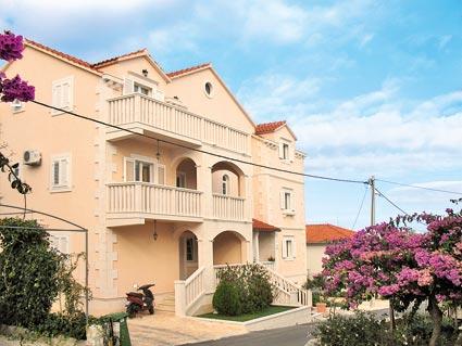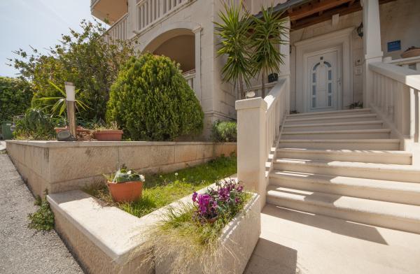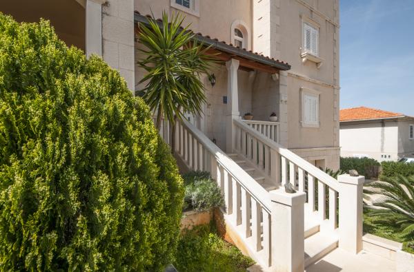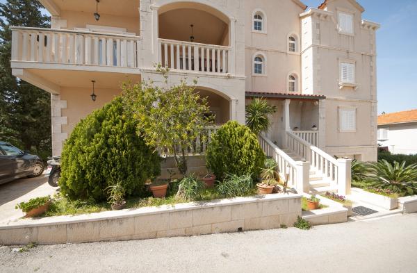Nový dům s celkem 4 apartmány, Villa Maria, se nachází v rezidenční a rekreační čtvrti Supetar v bezprostřední blízkosti centra s širokou nabídkou sportovních a zábavních zařízení. Tenisové kurty 150 m, obchody 200 m, oblázková pláž a restaurace cca 350 m, centrum města cca 800 m. Částečně oploceno kamennou zdí, cca 600 m² pozemku s rostlinami a zelení. Parkování je zajištěno pro všechny hosty. Každý apartmán má krytou terasu/balkon s nábytkem a některé mají výhled na moře.