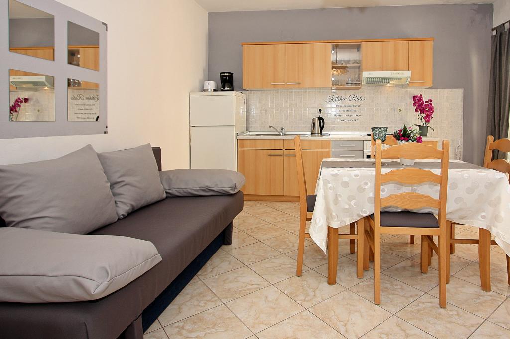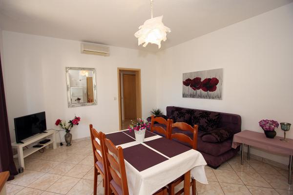 Extrémně čistý byt a pěkně zařízený. Má dostatek prostoru a velkou terasu, která je po celý den zastíněna. Ložní prádlo vonělo velmi pěkně, nechali nás mýdlo, toaletní papír, dvě tablety do myčky, mycí prostředek na ruční mytí nádobí, mouku, čaj a další. Jedinou nevýhodou byl kombinovaný sporák, který měl dva varné desky a dva plynové, ale nefungovaly, protože tam nebyl žádný plyn. Fungovaly pouze dva varné desky a trouba. Ale můžete také vařit. Pláž je blízko, pouhých 5 minut chůze. Obchod je také docela blízko, na cestě na pláž a město je hned vedle, asi 10 minut. Stručně řečeno, vše je blízko (včetně bank, bankomatů, restaurací a barů). Město Supetar je velmi krásné, zejména v noci. Vyplatí se chodit po nábřeží, kde prodávají různé atrakce. Pod pláží je mezi stromy spousta stínů, takže je to skvělé. Mají také obrovskou skluzavku a nafukovací vodní hračku pro děti. Šli jsme k jídlu v restauraci nebo rychlém občerstvení Jure a byli jsme velmi spokojeni. Velmi dobré jídlo a velmi přátelský personál. Dokonce i majitelé bytů a dívka, která pomáhá, jsou velmi přátelští.
