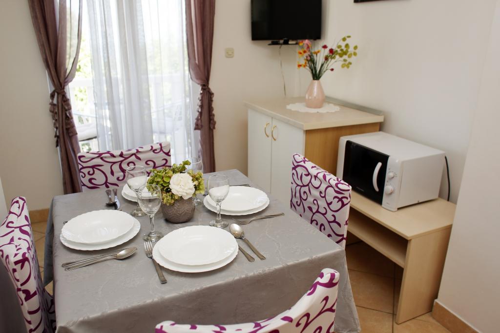 Naše apartmány se nacházejí v první řadě u moře, jen pár metrů od pláže, v malém a klidném městečku Mirca. Dvůr je plný zeleně s mnoha květinami a středomořskými ovocnými stromy. Všechny apartmány jsou plně vybaveny, mají balkon s výhledem na moře nebo vlastní venkovní terasu, klimatizaci a Wi-Fi. Parkovací stání se nachází ve dvoře domu. Nabízíme také gril, kde si naši hosté mohou připravit svá oblíbená jídla. Pomáháme našim hostům připravit gril, dopřát jim drink a náš olivový olej, který se skvěle hodí ke každému pokrmu. Apartmány se nacházejí v blízkosti mnoha stezek pro pěší a cyklisty, takže si hosté mohou užívat krásnou přírodu.