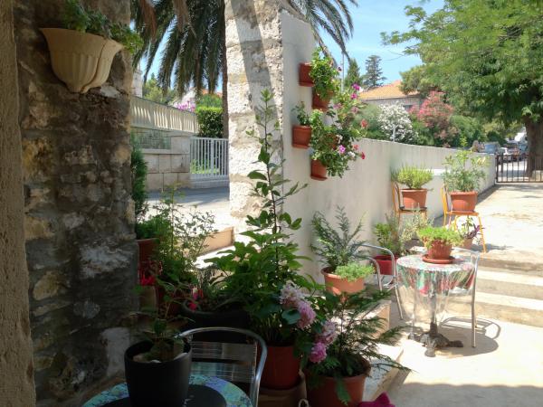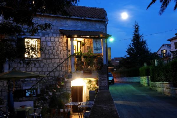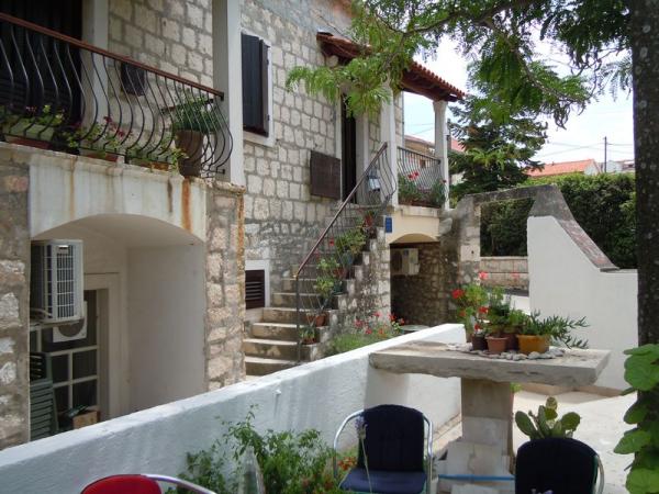 Naše apartmány se nacházejí v tradičním kamenném domě v centru města Supetar. Ve dvoře před domem je soukromé parkoviště pro auta našich hostů. Na terase před domem mají hosté možnost posedět ve stínu se sklenicí nápoje a výhledem na moře. Hosté mají také možnost připravit jídlo na grilu na terase před domem. Pláž se nachází přímo před domem, 20 metrů od hotelu. Nedaleko se nachází kavárna, restaurace, pošta, kiosek a další různé nabídky. Dům se nachází na ideálním místě pro hosty, kteří chtějí pohodlí, když jsou na dovolené. Vše je k dispozici během několika minut, bez použití automobilu, což znamená ideální pro rodiny s malými dětmi.